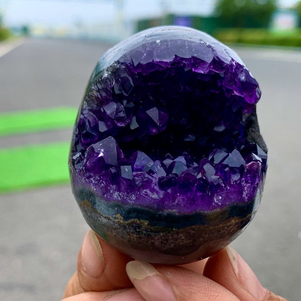 I received the specimen pictured in the listing however it was significantly less color saturated and greener than what was shown in the listing. What appears to be ice blue crystals on a dark purple base is in reality greenish blue crystals on a light purple base. The seller offered a partial refund in consideration of this, and I agreed.