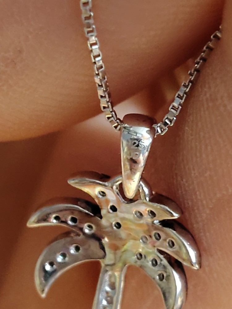 1/3Ct Round Cut Blue & White Diamond Palm Tree Pendant Necklace In 14K Gold