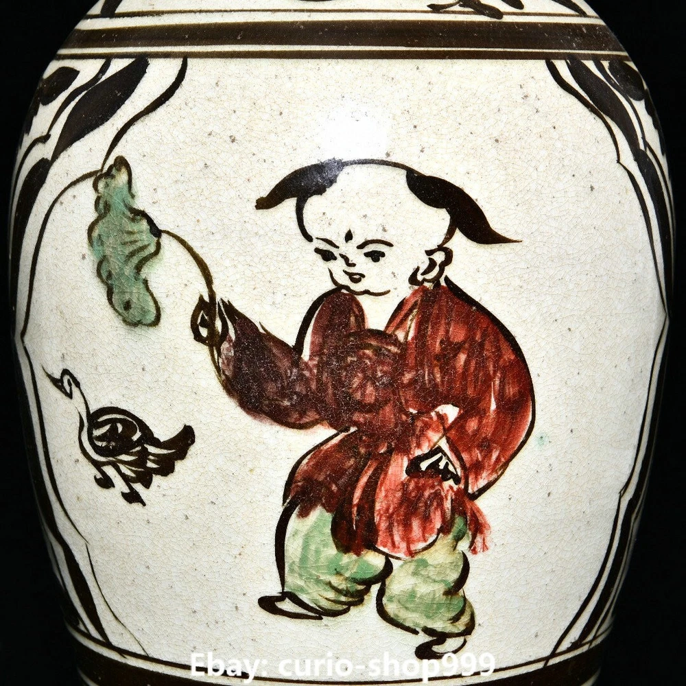 **** Welcome to our antique & Collectable Shop : Porcelain**** Description: Here is an 13" Old Song Dynasty Cizhou Kiln Porcelain Tongzi Kid Animal Pattern Bottle Vase. It is in good condition, and was created by skilled craftsmen in traditional style with fine handcrafts.This is a great piece of valuable collection, a valuable personal alter or a very good present. the handwork is very fine with incredible detailling. Don't miss out this chance to get it.Wish you good luck! . Material : Cizhou Kiln Porcelain Plating : Chinese Style : Same as photos showing Size : High 13.0 Long 5.9 Breadth (inch) Condition Perfect Condition. Perfect, with no scratches, flaws or repairs. Weight: 2.7 KG----included the weight of packing materials Shipping cost to all over the world countries in Free Honored Customers: We are selling the collectibles products and crafts in Beijing ,China since 1993 and collected them all over the world all the time . In our shop the bronze sculpture, animal, vase, urn, flowerpot,Incense Burner.Table chair sets. Militaria goods. buddha statues, Bodhisattva Statues, Buddhist Ritual Items etc is our speciality .Many of the items we sell come from our own personal collection and have been in our family for a very long time .My great-grandfather was the first in this family to start collecting art & antiques when he still lived in San Xi and Tibet around 1922 ,some of the paintings he once collected can now be seen in museums around the globe.We won't make money from the shipping cost, if you dislike the item when you receive it,we can refund all of your money to you within thirty days. Please confidence for bidding . We recommend the combine shipping and offer you an big price discount if you order more items together ! 2023.8.25 四 号
