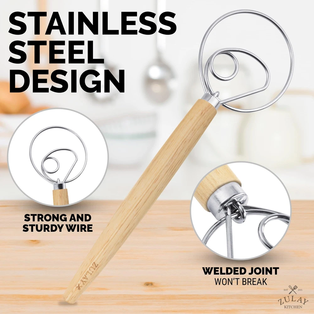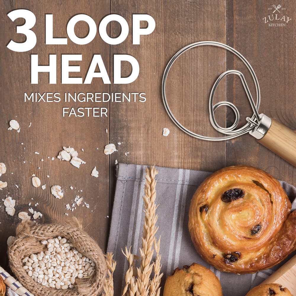 13-Inch Danish Dough Whisk - Wooden Danish Whisk for Dough with Stainless Steel Dough Hook - Traditional Dutch Whisk - Bread Whisk for Sourdough, Pizza, Pastry, Cake Batter WHISKING MADE EASY: This Danish dough whisk is a must-have for anyone looking to achieve perfectly mixed dough and batter. With this baking tool, you can mix ingredients quickly without the need for a heavy-duty mixer. The high-quality, rust-resistant stainless steel ring is durable enough to stir and remove clumps from light and stiff dough. FLOW THROUGH DESIGN: Aerate high-moisture doughs like sourdough effortlessly with this brodpisker. The three-loop design can cut through and combine ingredients like butter or eggs without overmixing the dough. This flexible whisking tool is great for scraping the dough from the corners of a bowl and also helps get the sticky dough off the whisk easily. EASY TO HOLD: Mix thick dough without worrying about hand fatigue with this lightweight kitchen whisk. The long ergonomic wooden handle helps mix up dough with ease and comfort. Unlike a wooden spoon, this dough mixer is perfect for getting that smooth texture a lot quicker. From bread and cake batters to pancakes and muffins, this stainless steel whisk is ideal for baking like a pro. EFFORTLESS CLEANUP: After baking a delicious recipe, dealing with a messy and sticky whisk is the last thing you want to do, and this dough hook takes all your worries away. The flexible wire construction prevents clumps from getting stuck; simply run the whisk under water and use your fingers or a brush to get any dough out of the loops or crevices. HASSLE-FREE, ZULAY GUARANTEE: We love and take pride in our bread dough whisk and back it up with a lifetime guarantee. If there are any issues, just contact us, and we will make it right (even after the return window). Mix it up with the magic of this Danish whisk! Shipping We offer FREE shipping on all orders! We ship within Three business days of payment, usually sooner. We use a selection of shipping services such as UPS, FedEx, USPS etc. We only ship to the lower 48 states, no APO/FPO addresses or PO Boxes allowed. Local pickups and combined shipping options are not provided at this time. Return You can return a product for up to 30 days from the date you purchased it. Any product you return must be in the same condition you received it and in the original packaging. Please keep the receipt. Payment We accept payment by any of the following methods: PayPal Please pay as soon as possible after winning an auction, as that will allow us to post your item to you sooner! Feedback Customer satisfaction is very important to us. If you have any problem with your order, please contact us and we will do our best to make you satisfied. Contact Us If you have any queries, please contact us via ebay. We usually respond within 24 hours on weekdays. Please visit our eBay store to check out other items for sale! Thank you for shopping at our store.