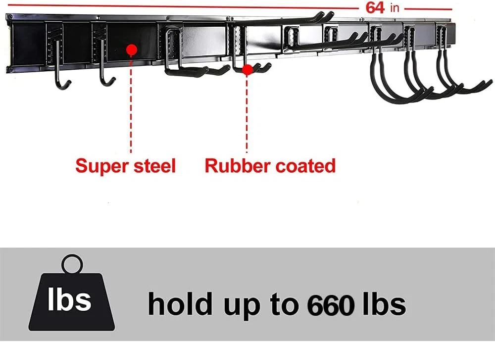 Product Description 13 PCS Tool Storage Rack, 64 Inches Adjustable Garage Organization Wall Mounted Storage System with 9 Hooks, Heavy Duty Steel Garden Tool Organizer Wall Holders Alloy Steel ✎WIDELY USED—The tool storage rack is suitable for organizing all kinds of tools, such as shovels, push brooms, bikes, bags, towels, robes, umbrellas, rain boots , etc. A nice choice for storing and holding your tools in home, garage, apartment, utility room, basement or shed. ✎SUPER MATERIAL—Powder-coated steel for durability-resists of rusting, chipping and cracking. Rubber-coated sleeves are scratch-resistant. Steel construction epoxy finish. ✎EASY TO INSTALL— Including heavy duty mounting Hardware (16*Screw, 16*Expansion tube). Easy to attach and move around on the rail. If you have any questions about the garage garden tool hanger installation you can contact us by e-mail. We will help you with it. ✎MULTI-PURPOSE & HANDY—This 13PC garage storage system includes different styles of hooks meet your diverse needs. Quickly and easily snaps securely into place on mounting rails (included) with provided locking gripper.Hardware with the kit for wood stud ,drywall,create or brick wall. About Us We are a reputable seller with many years of experience selling on eBay. Our goal is to provide high-quality products and excellent customer service. Shipping Items will be shipped within 1-3 business days when we received payment. (Orders are not processed on weekends & holidays) Tracking information will be sent once item is shipped. Delivery time depends on destination and other factors Item is shipped to ebay address. Leaving correct address can minimize delay. For international shipping and shipping to Guam, Hawaii and Alaska, Please contact us before placing the order. International buyers please note: Import duties, taxes and charges are not included in the item price or shipping charges. These charges are buyer’s responsibility. We will try our best to reduce the risk of the custom duties. Local pick-up is unavailable at the moment. Contact Us We reply any email messages within 1 business / working days(off-duty at weekend). If you do not get a response from us, then please check your junk or spam mailbox. Our Business hours: Mon-Fri 9:00-18:00, UTC/GMT +8 hours. Please contact us either by clicking "contact seller" in the "purchase history" section or simply click "ask a question" at the bottom of this page. If you are unsatisfied with our item or service, please contact us before leaving any feedback. We are committed to resolve all issues in a friendly and satisfactory manner.