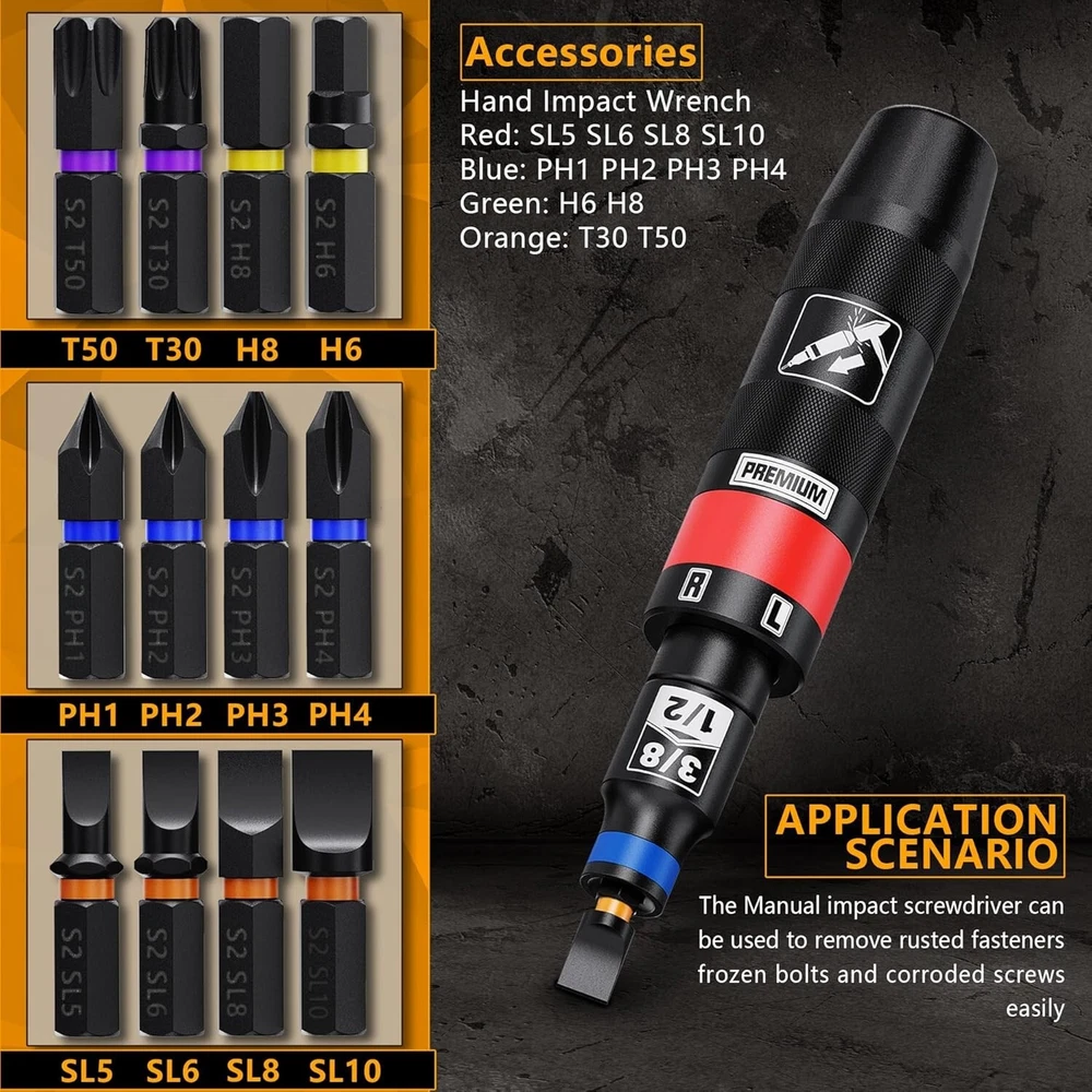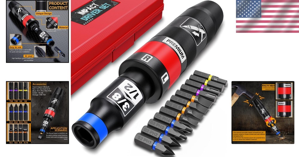Impact Screwdriver Set 13 PCS Manual Reversible Rusted Fasteners Repair Tool ‹ › ‹ › ‹ › ‹ › ‹ › ‹ › ‹ › Impact Screwdriver Set – 13 PCS Manual Reversible Tool Perfect for tackling rusted fasteners and providing precision in your repair jobs. Features: Durable Material: Made of high-quality chrome-vanadium steel, this impact driver is rust-proof and corrosion-resistant, ensuring longevity. High Strength: With a high-speed bearing steel internal mechanism, it can withstand impacts of up to 50 kg, making it ideal for tough jobs. Ease of Use: Effortlessly align the head with the screw, strike the tool’s top with a hammer, and watch the front batch head rotate automatically in the preset direction. Unique Design: Features a non-slip knurled handle for a firm grip and a precision ground tip for a perfect fit. Versatile Application: Designed to effectively remove rusted fasteners, frozen bolts, and corroded screws. Essential for motorcycle maintenance and engine repair. Comprehensive Specifications: This set includes 13 pieces: 4 slotted bits (SL5, SL6, SL8, SL10), 4 Phillips bits (PH1, PH2, PH3, PH4), 2 hexagon bits (H6, H8), and 2 Torx bits (T30, T50). Why Choose Our Impact Screwdriver Set? Say goodbye to the frustration of stripped and rusted screws! Our Impact Screwdriver Set is designed to meet all your repair needs with style and precision. Crafted from robust chrome-vanadium steel, this set provides unparalleled durability and reliability that ensures you are always ready for the toughest jobs. This 13-piece set is not just versatile but essential for anyone serious about maintenance, whether you're a DIY enthusiast or a professional mechanic. Equip yourself with tools that perform, and experience the ease of repairs like never before. Don’t let rust and stubborn fasteners hold you back. Order your Impact Screwdriver Set today and elevate your repair game! Shipping Free & Fast Shipping - We offer free shipping to most of the USA with a normal delivery time of 3-7 days. However, due to the current situation, additional delivery time (up to 3 weeks) may be required for some items. Alternative Carriers - We may use alternative carriers (e.g. USPS, FedEx, UPS, etc.) to ensure your package arrives safely and on time. Due to the use of multiple carriers, we are unable to provide a tracking number automatically. Handling Time - Orders are processed and shipped within 1-2 business days of receiving cleared payment. Shipping Restrictions - Shipping to Alaska, Hawaii, Puerto Rico, Guam, and other US territories may incur shipping charges or delivery restrictions. Please contact us before ordering, or your order can be refunded/cancelled. State Restrictions - There may be restrictions based on your state of purchase. For example, certain items may not be shipped to California due to state regulations. Contact for Tracking Updates - If you require tracking updates or have any concerns about the delivery of your order, please feel free to contact us, and we will be happy to assist you. Return 30-Day Hassle-Free Returns - We want you to be completely satisfied with your purchase. If you are not, you can return the item within 30 days of receiving it for a full refund or exchange. Easy Return Process - To start a return, simply contact us and we will provide you with a prepaid return shipping label and detailed instructions. Restocking Fee - There are no restocking fees for returns. However, the buyer is responsible for return shipping costs if the return is not due to a seller's error. Refund Processing Time - Refunds will be processed within 5 business days of receiving the returned item in its condition. Payment We accept all major credit cards, PayPal, and Apple Pay for your convenience. Your payment information is secure and encrypted to ensure a safe and seamless transaction. Please complete your payment within 3 days of purchase to avoid any delays in shipping. Feedback Your feedback is extremely important to us. We strive to provide the best products and customer service possible. If you are satisfied with your purchase, please take a moment to leave us a positive review. If you have any concerns or issues with your order, please contact us before leaving negative feedback. We are committed to resolving any problems and ensuring your satisfaction. Contact Us If you have any questions or concerns, please feel free to out to our customer support team. You can contact us through the eBay messaging system. We are available Monday to Friday, 9:00 am to 5:00 pm EST, and we will do our best to respond to your inquiry within 24 hours. Buy it now and enjoy a pleasant shopping experience! Model: Impact Screwdriver Set Item Width: Impact Screwdriver Set Item Length: Impact Screwdriver Set Item Height: Impact Screwdriver Set Item Diameter: 1/2 inch Unit Quantity: 1 Features: Reversible,Portable,Easy to use,Precision ground tip,Non-slip knurled handle Material: Chrome Vanadium Steel,High-speed bearing steel Type: Impact Driver Drive Type: Mixed Set Number of Pieces: 13 System of Measurement: Standard (SAE) Color: Multicolor Unit Type: Unit