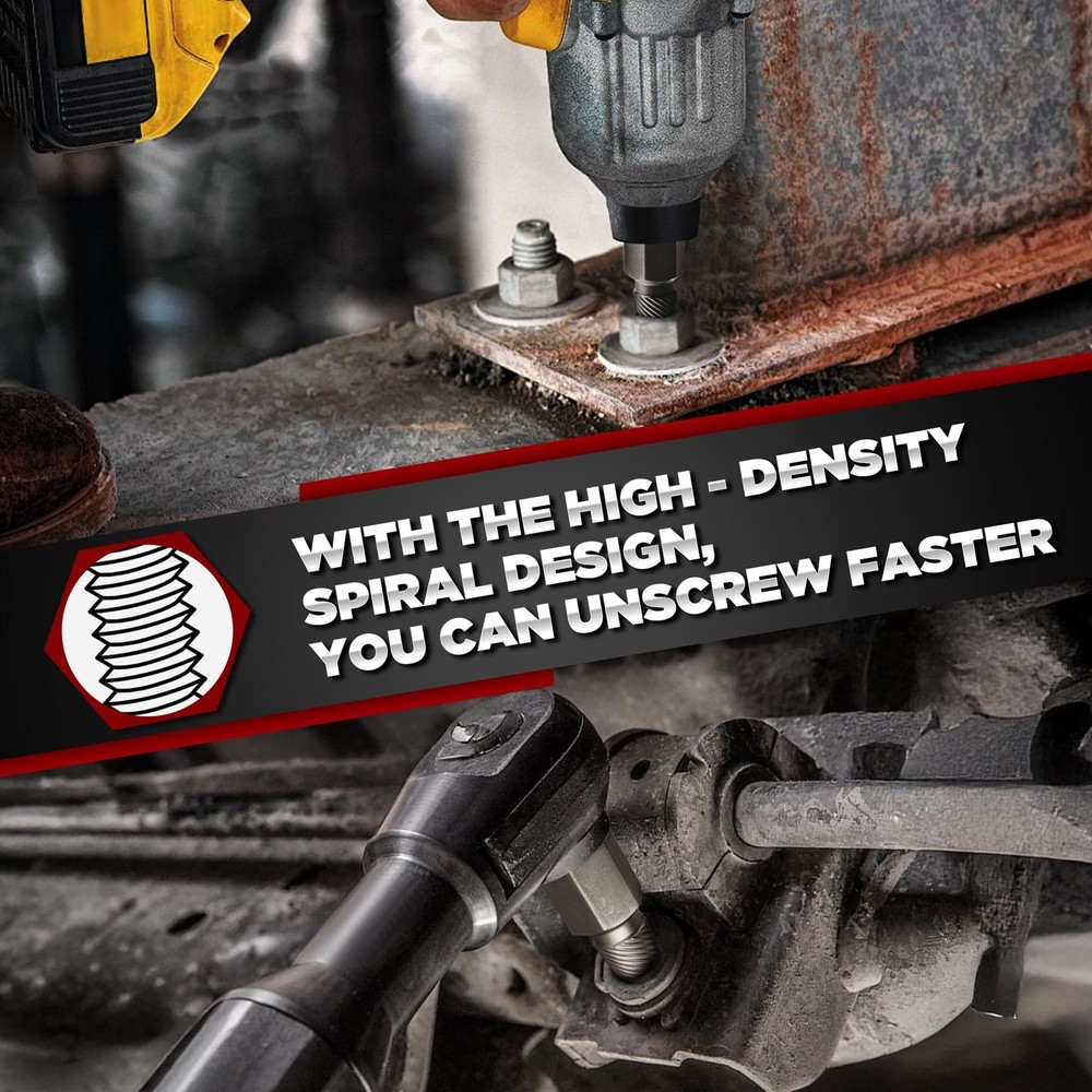13-Piece Screw Extractor Set, Multi-Spline Easy-Out Bolt Extractor Kit, Chrome Molybdenum Steel Tool for Stripped, Rusted & Broken Bolts, Screws & Nuts Removal 【Versatile Sizes for Various Applications】 This 13-piece extractor set includes a range of sizes (1/8" to 5/8") to tackle broken screws, bolts, nuts, studs, fittings, and threaded pipes with ease. Designed for both DIYers and professionals, this set is a must-have for any toolbox. 【Heavy-Duty CR-MO Steel for Maximum Durability】 Crafted from heat-treated chrome molybdenum steel (CR-MO), this set delivers superior strength, wear resistance, and longevity. Built to withstand high torque applications, ensuring reliable performance in tough jobs. 【Easy to Use with Power & Hand Tools】 Compatible with impact wrenches, drills, and hand tools, the high-density spiral design provides maximum grip for fast and effortless removal of stubborn fasteners. 【Laser-Etched Markings for Quick Identification】 Each extractor features high-visibility laser-etched size markings for easy selection. The precision-fit storage case keeps the tools organized and prevents loss. 【Trusted Quality & Lifetime Warranty】 Tested for top-tier performance and durability, this extractor set is built to last. We stand behind our product with a lifetime limited warranty—if you have any issues, contact us for support!