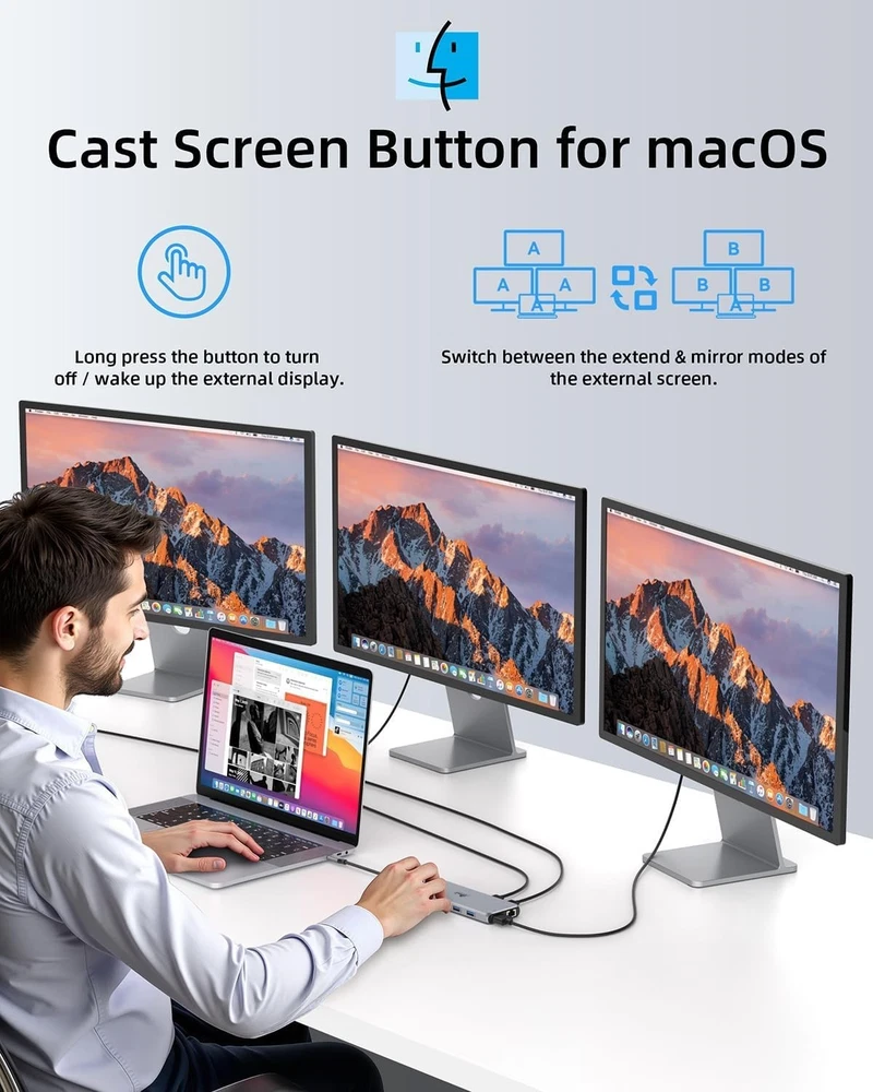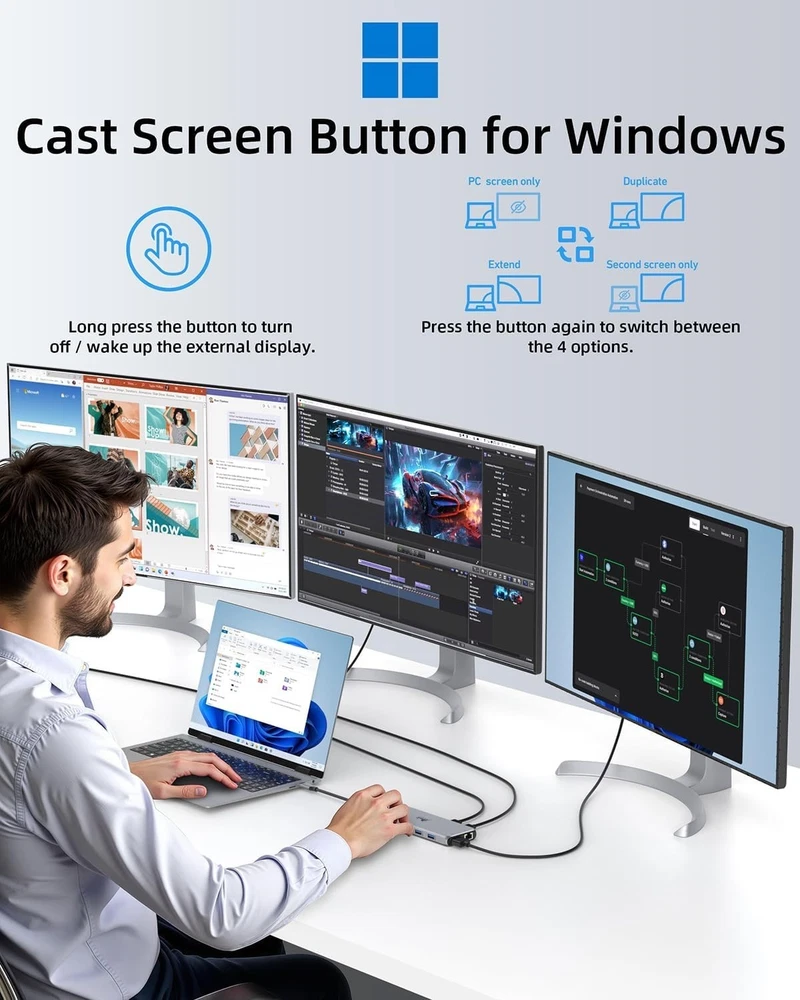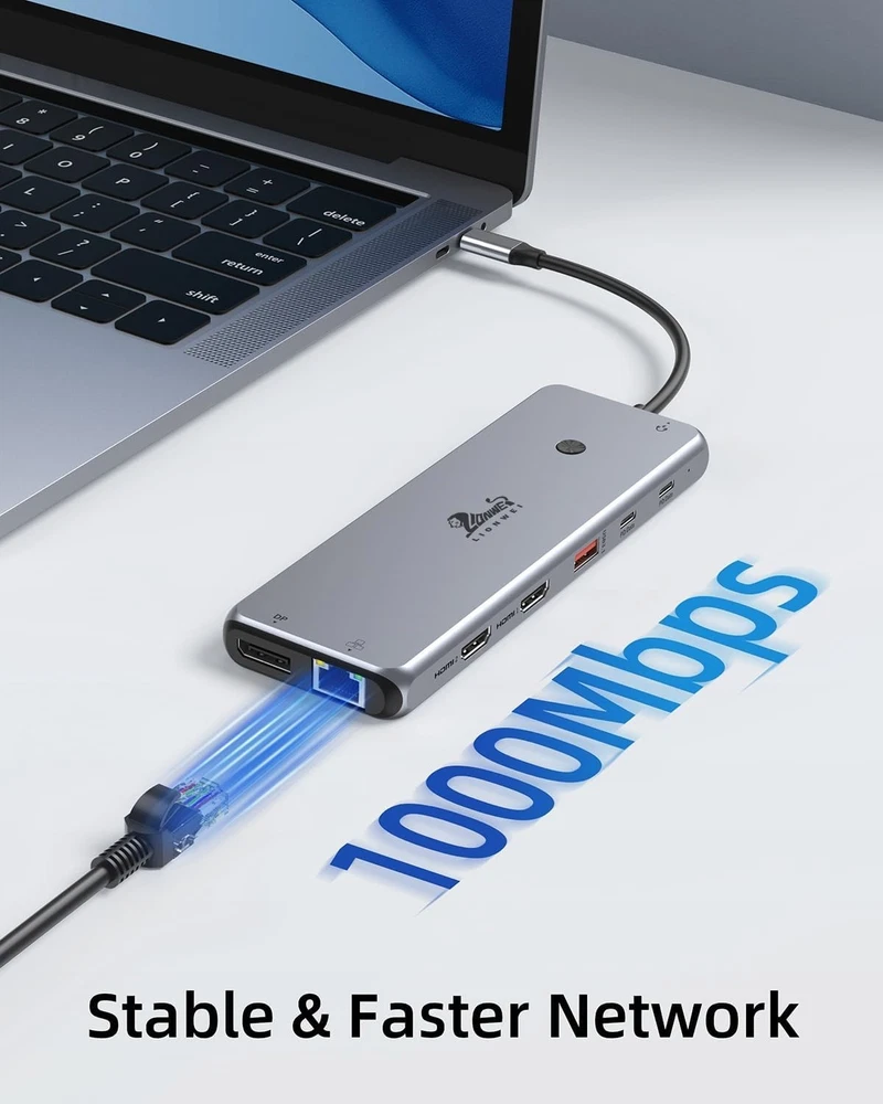 This hub is an absolute game-changer for my workspace! I can now connect all my monitors and accessories effortlessly while enjoying blazing-fast data transfers and stable internet. It's like having a full command center right at my fingertips.