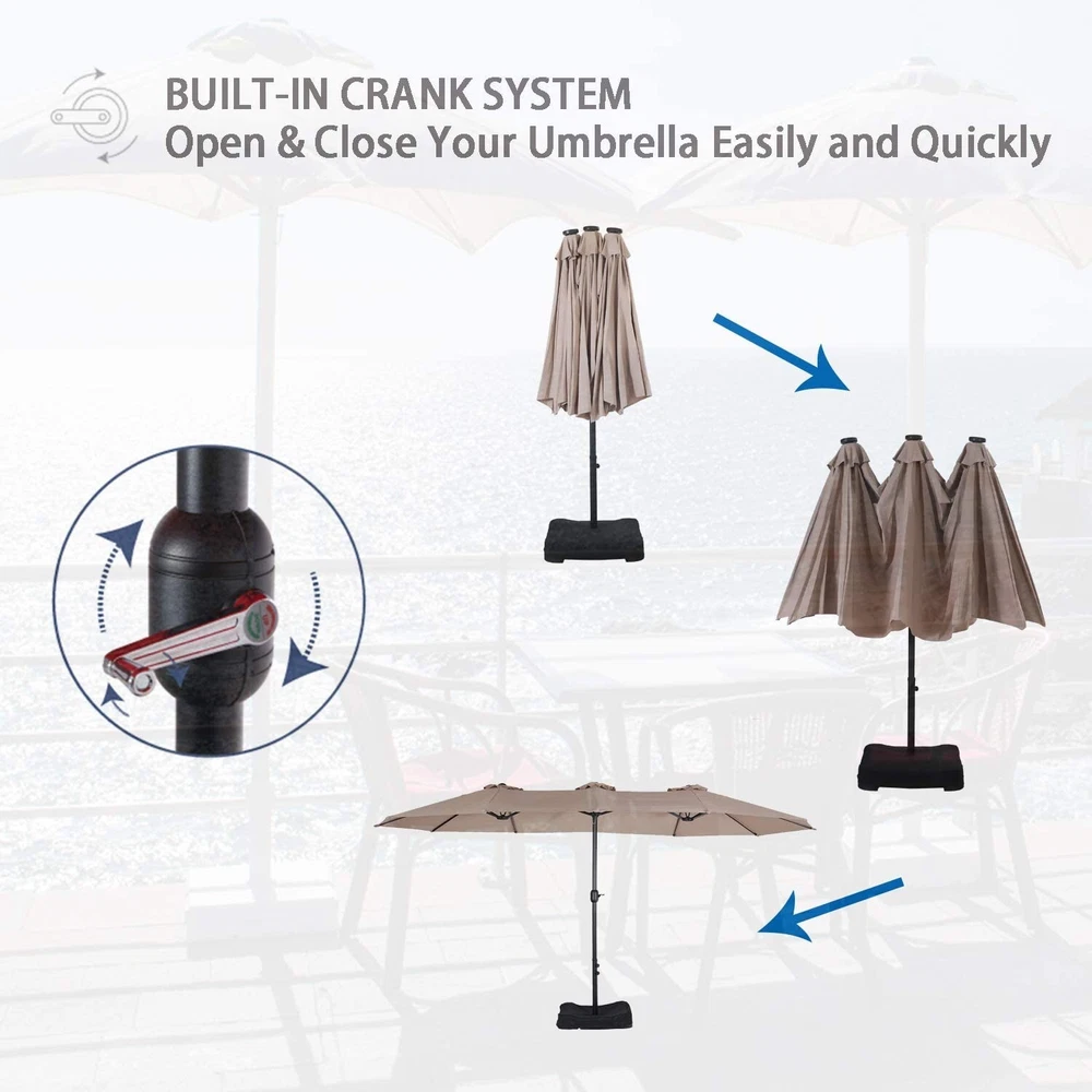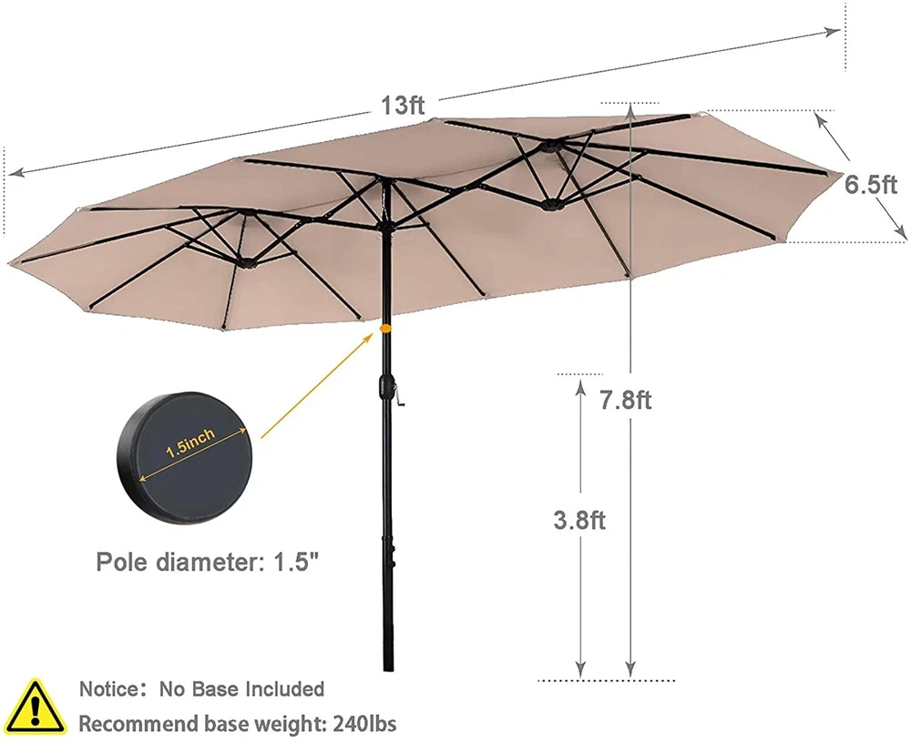 13ft Outdoor Patio Umbrella with Rattan Dining Chair and Rectangular Table Set