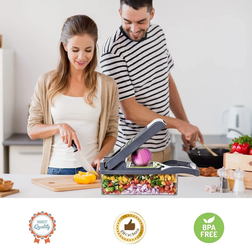 🥦【Add Accessories 】🥦We've added an accessory, a hand pull string onion chopper to this multifunctional vegetable chopper cutter. Compared to other choppers, it can cut small pieces of solid food into a semi-liquid form, which is a perfect combination. 🥕【High-Quality】🥕The onion chopper is food-grade ABS plastic material and 420-grade hardened stainless steel blades. The plastic part is sturdy, smooth, and comfortable to use. The stainless steel blade is sharp enough to cut through most vegetables and fruits, and it's easy to clean without rusting. It can be used for a long time and is a good helper in your kitchen. 🥒【Save Time】🥒This veggie chopper slicer is a practical kitchen tool. Usually, it takes a lot of time to cut food into small pieces and thin slices. With this vegetable slicer, this process can be reduced. Time-consuming, a vegetable chopper can cut your prep time down to minutes. This lifestyle has brought us into the era of fast food... 🧅【Innovative Design】🧅 Use the food basket when slicing small vegetables and fruits, which prevents the foot from slipping when sliced, and never have to worry about cleaning and wiping. It also can be cleaned in minutes with its accompanying scrubbing fork. Its compact size allows you to store it anywhere.... 🍆【Service】🍆 Do not place the blade arbitrarily. After rinsing and drying, please collect the blade in a container and keep it away from children. If you are not satisfied with our manual vegetable dicer chopper, please send us an email, and we will promptly replace it for you without any hassle. So please place an order now .