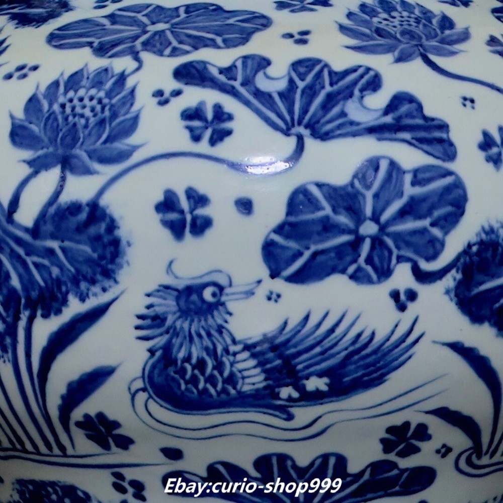 **** Welcome to our antique & Collectable Shop : Porcelain**** Description: Here is 13"Old Dynasty Blue White Porcelain Lotus leaf MandarinDuck Animal Crock Pot Jar. It is in good condition, and was created by skilled craftsmen in traditional style with fine handcrafts.This is a great piece of valuable collection, a valuable personal alter or a very good present. the handwork is very fine with incredible detailling. Don't miss out this chance to get it.Wish you good luck! . Material : Blue White Porcelain Size : Heigh t 11.4 Long 12.9 B readth (inch) Condition Perfect Condition. Perfect, with no scratches, flaws or repairs. Weight: 3.7 KG----included the weight of packing materials Shipping cost to all over the world countries in Free Honored Customers: We are selling the collectibles products and crafts in Beijing ,China since 1993 and collected them all over the world all the time . In our shop the bronze sculpture, animal, vase, urn, flowerpot,Incense Burner.Table chair sets. Militaria goods. buddha statues, Bodhisattva Statues, Buddhist Ritual Items etc is our speciality .Many of the items we sell come from our own personal collection and have been in our family for a very long time .My great-grandfather was the first in this family to start collecting art & antiques when he still lived in San Xi and Tibet around 1922 ,some of the paintings he once collected can now be seen in museums around the globe.We won't make money from t he shipping cost, if you dislike the item when you receive it,we can refund all of your money to you within thirty days. Please confidence for bidding . We recommend the combine shipping and offer you an big price discount if you order more items together ! 2024.07.08 四 号
