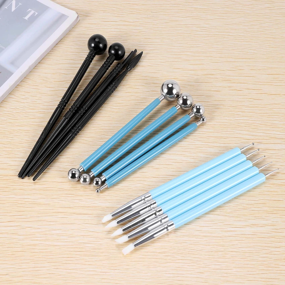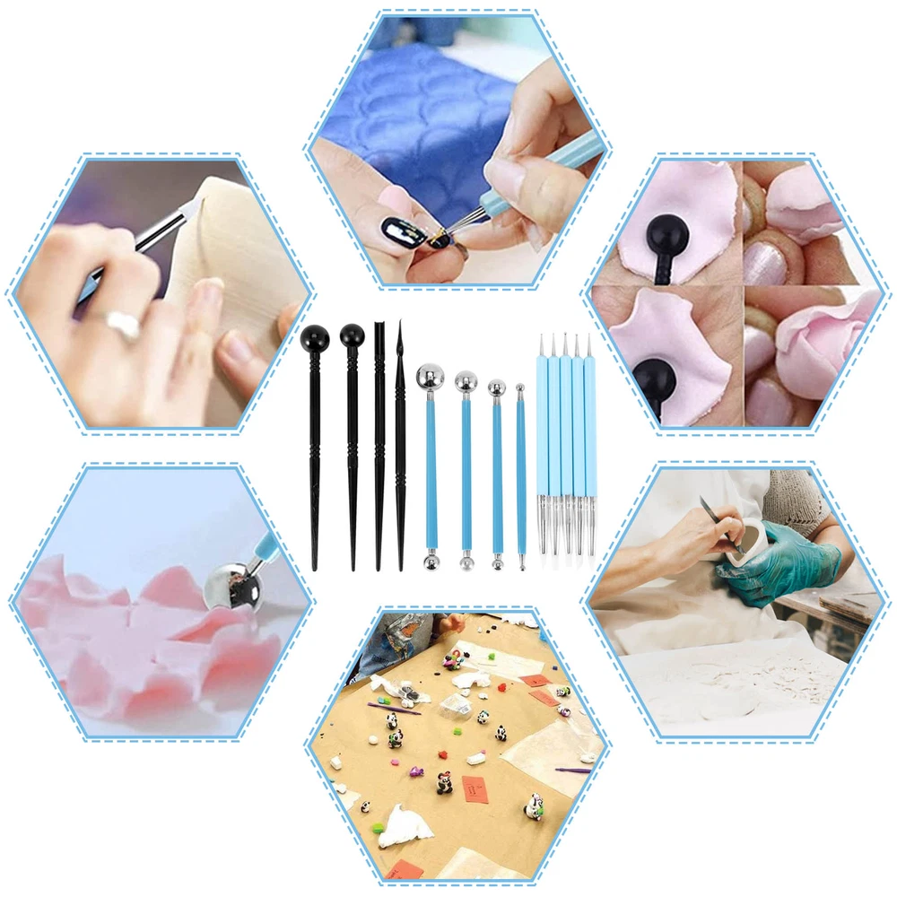 13pcs Polymer Modeling Clay Sculpting Tools, Dotting Pen, Silicone Tips,6055 Dual-headed Tools- Each stylus is dual-headed design.You will have 26 tools in this 13 stylus Silicone Rubber Tips-These color shapers painting brushes easy to create different decorative effects, excellent for blending art, e.g.colored pencils, soft pastels, oil painting, masking fluid, sculpting, Pan Pastel, charcoal, graphite User Tips: these stylus not only for clay sculpturing, but also ceramic engraving, embossing, art project, sugarcraft, cake decoration and nails art etc. Color: blue + black Material: plastic + acrylic Package Contents: 13 * clay tools Only the above package content, other products are not included. Note: Light and different displays may cause the color of the item in the picture a little different from the real thing. The measurement allowed error is +/- 1-3cm.