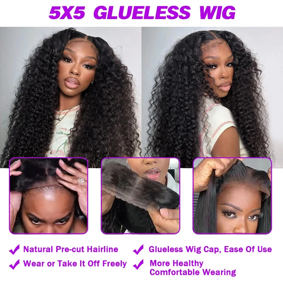 $ 64.26Deep Wave HD Lace Glueless Wig Pre Plucked Curly Human Hair with Pre Cut