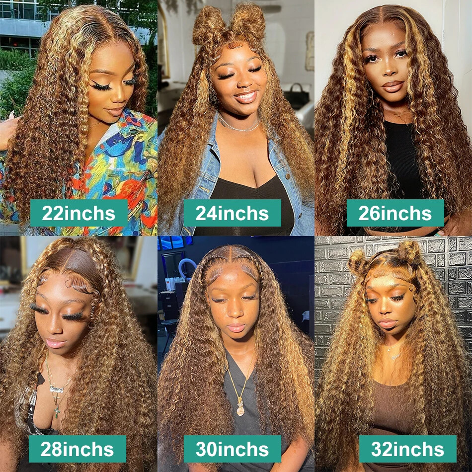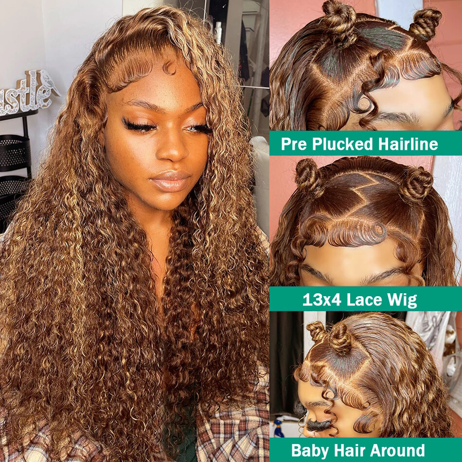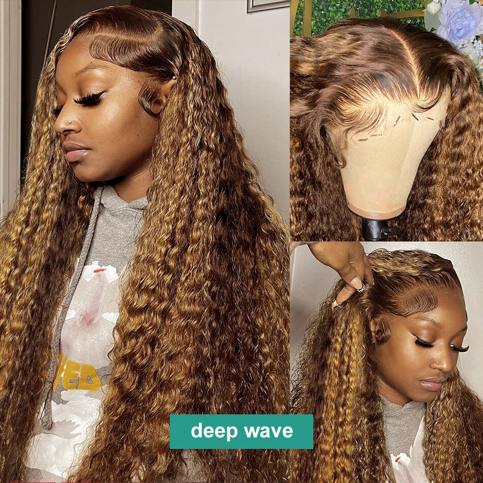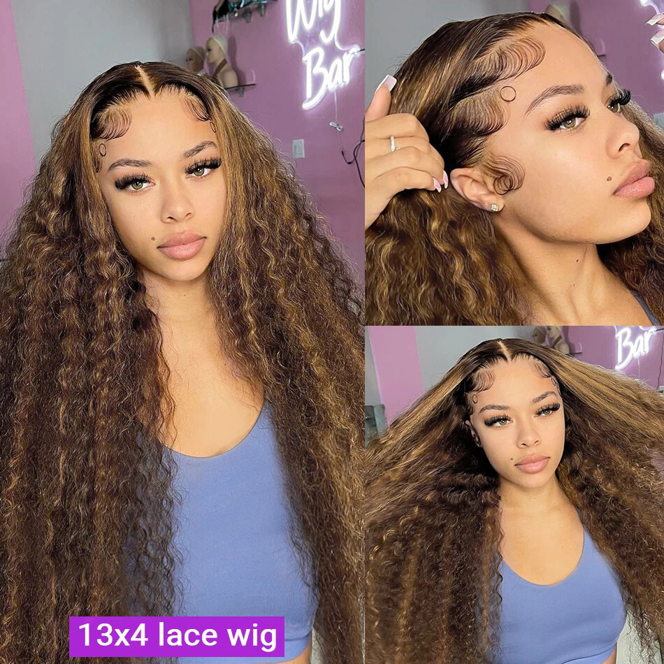 30 40 Inches 13x4 Glueless Lace Frontal Wig Highlight Ombre Brown Deep Wave HD 13x6 Lace Front Human Hair Wigs Curly 250Density