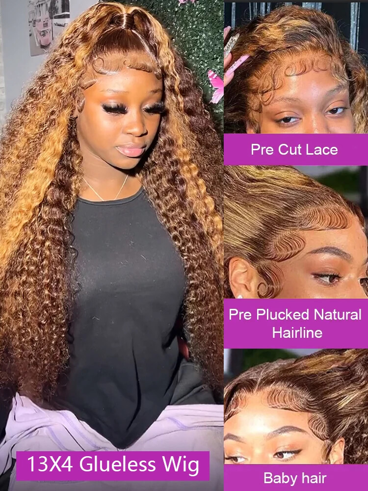 $ 96.31Curly HD 13x6 13x4 Lace Front Human Hair Wig Pre Plucked Glueless for Women