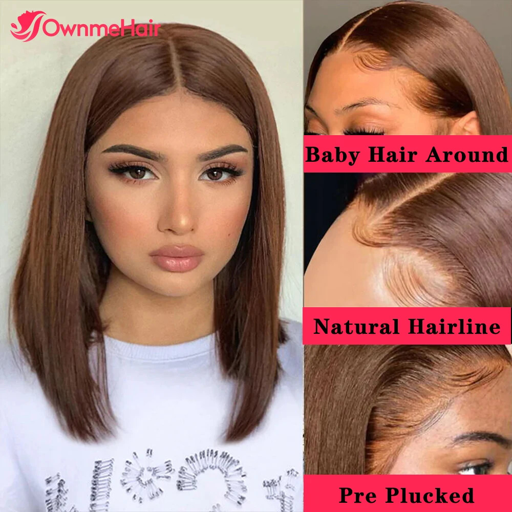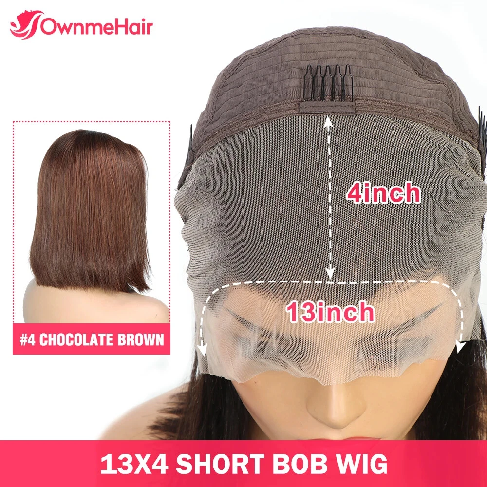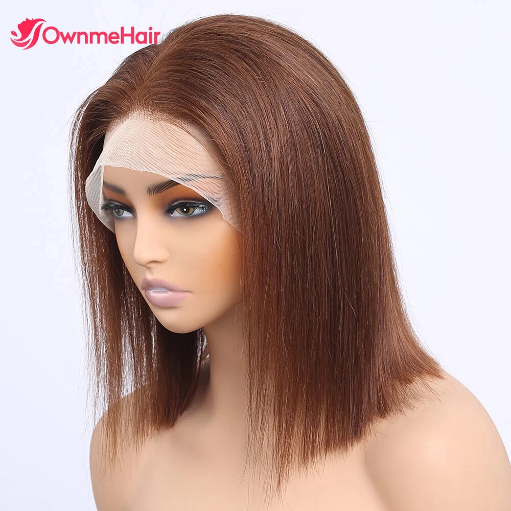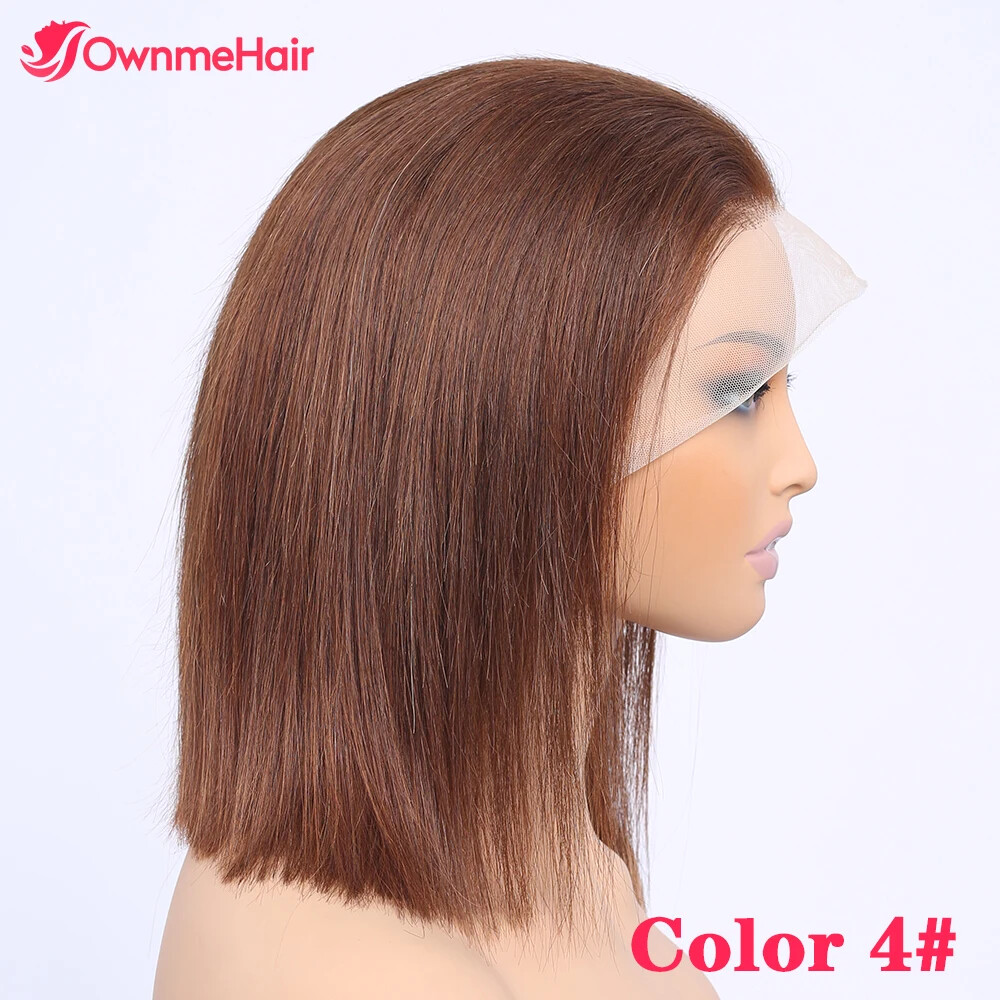 Home13x4 HD Lace Front Bob Wig Brazilian Human Hair Pre Plucked Brown 4#