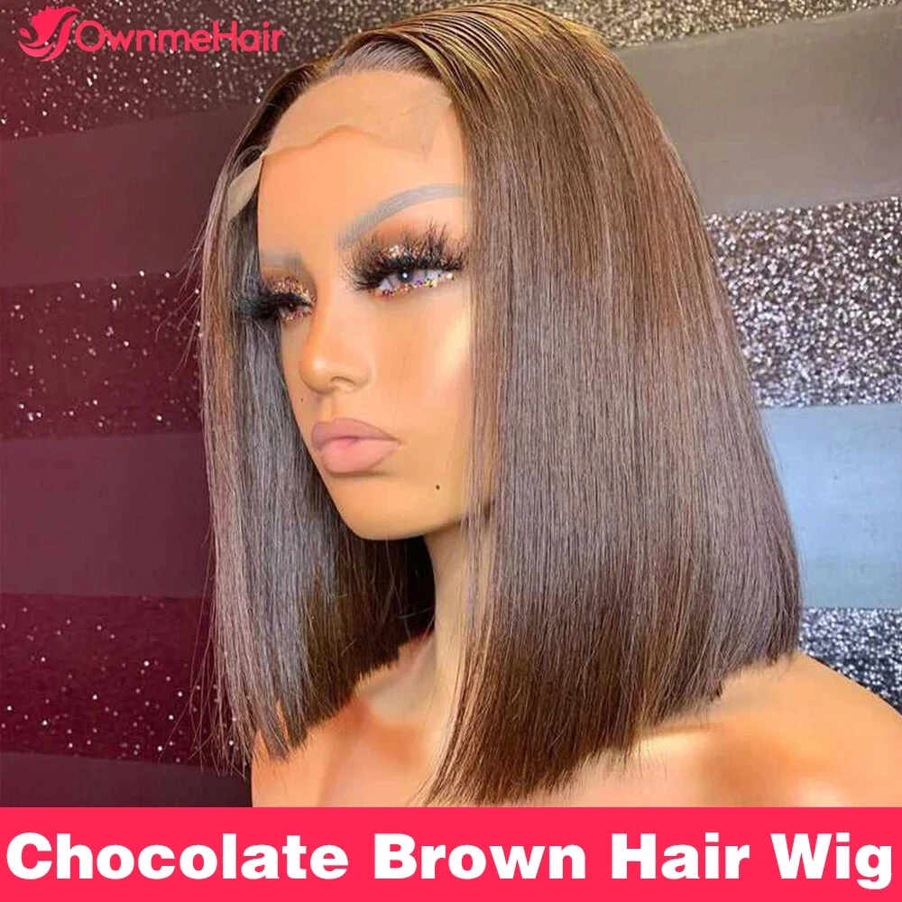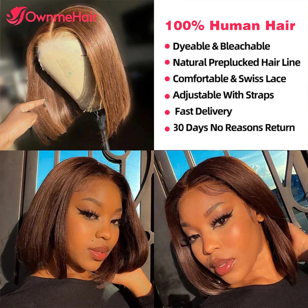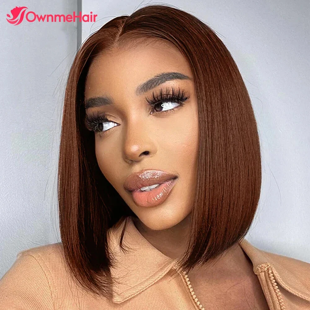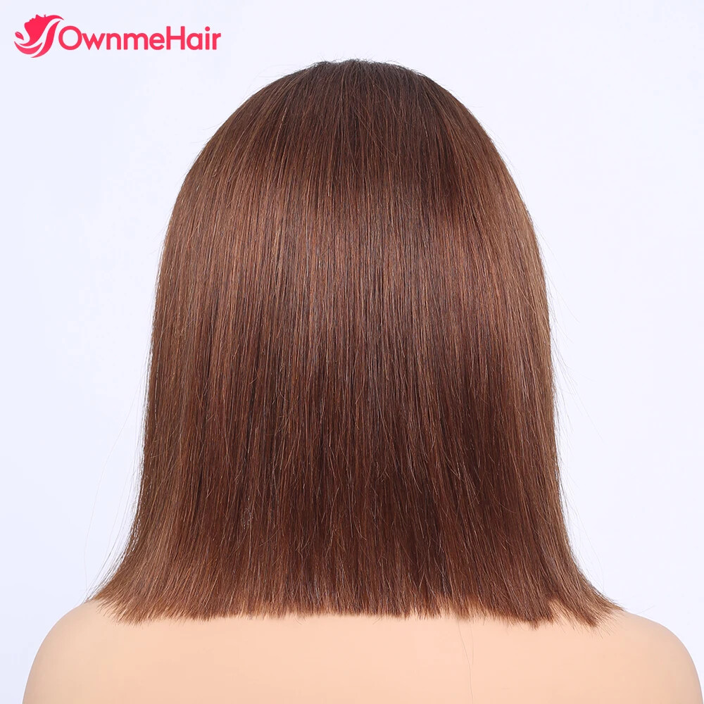 Home13x4 HD Lace Front Bob Wig Brazilian Human Hair Pre Plucked Brown 4#