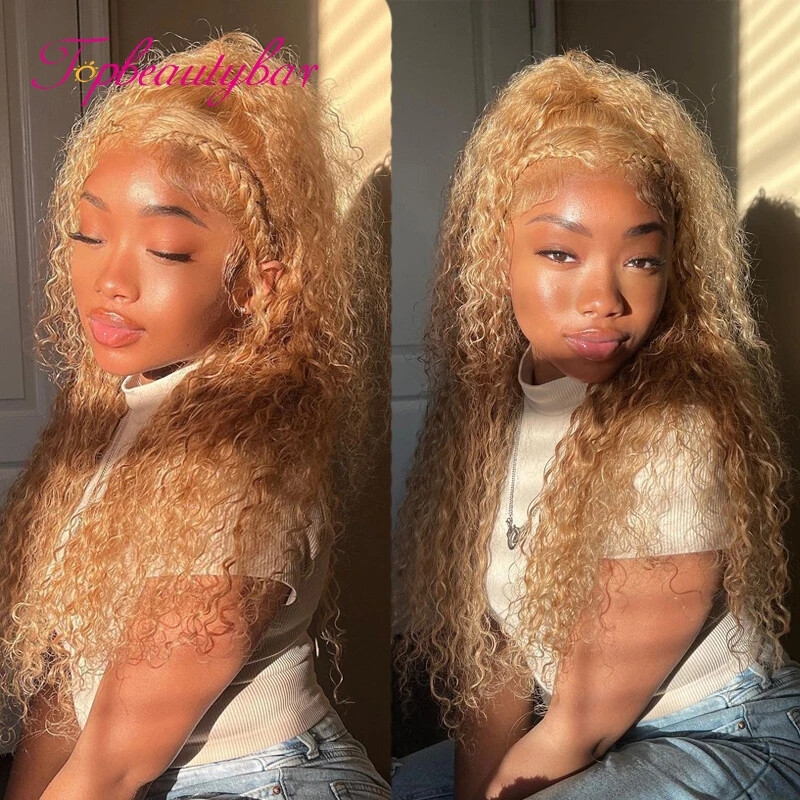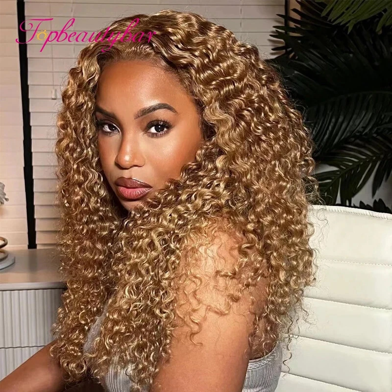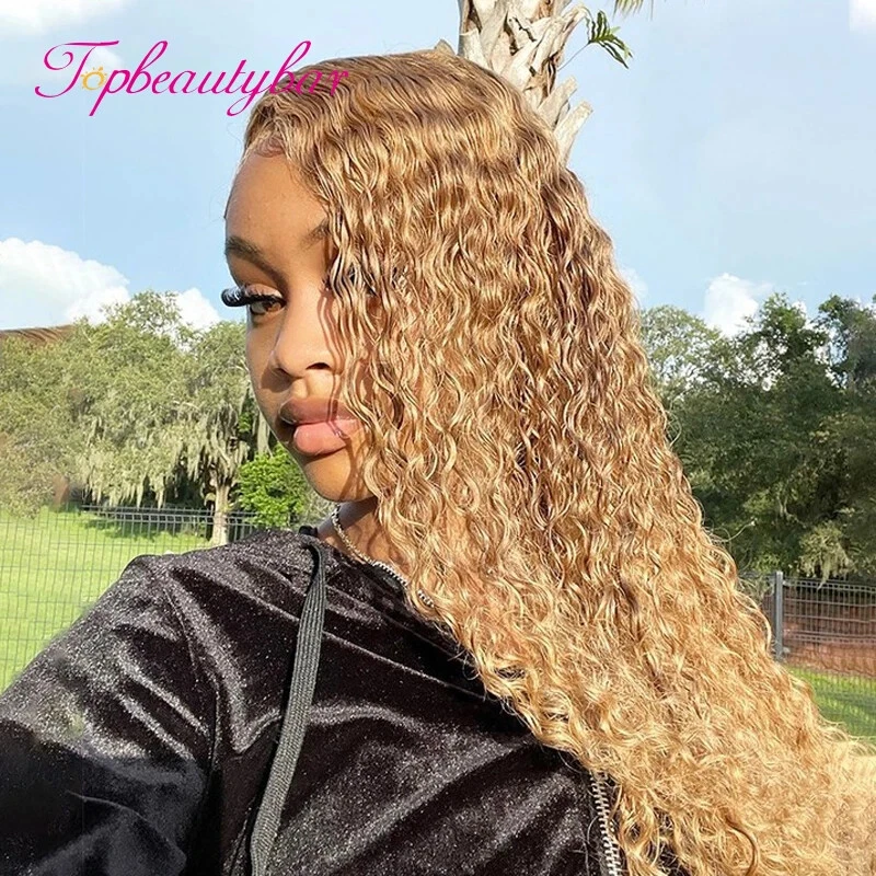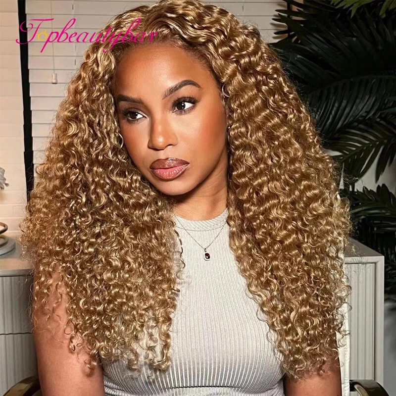 HD Lace 13x4 Lace Front Human Hair Wigs #27 Brazilian Curly Lace Frontal For Women PrePlucked 4x4 Closure Wig Bleached Knots
