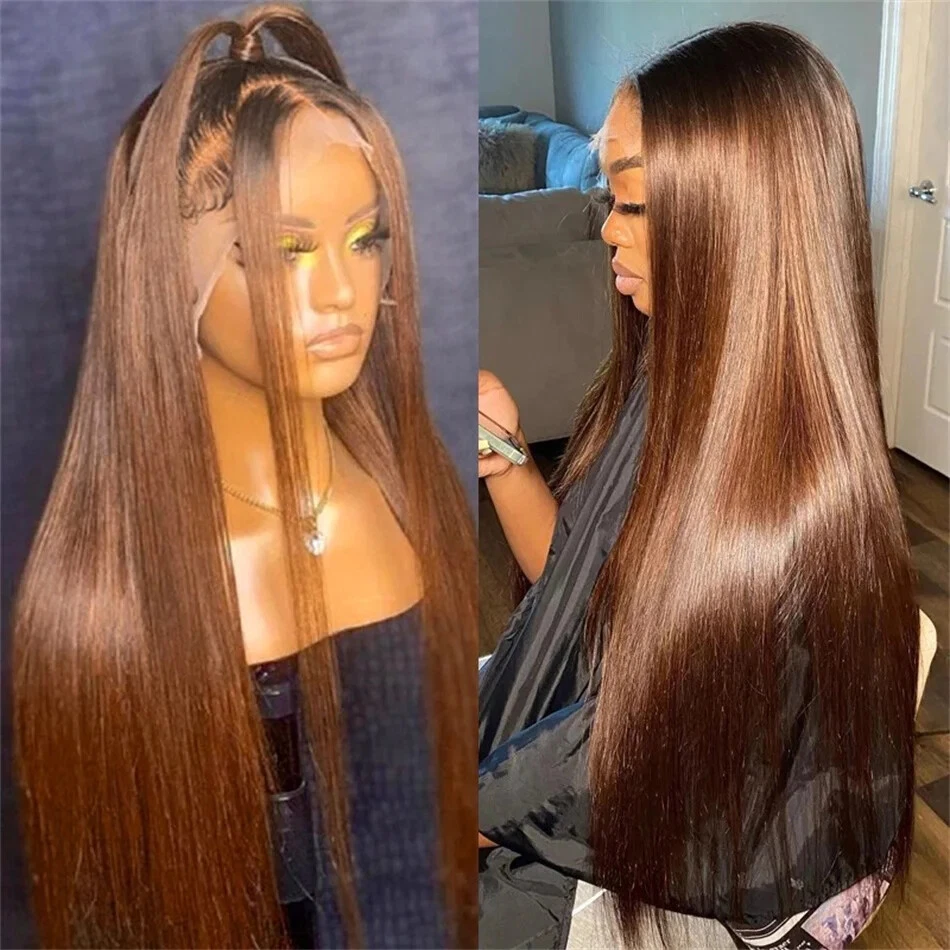 Reddish Brown 13x4 HD Transparent Lace Front Wig Body Wave Human Hair