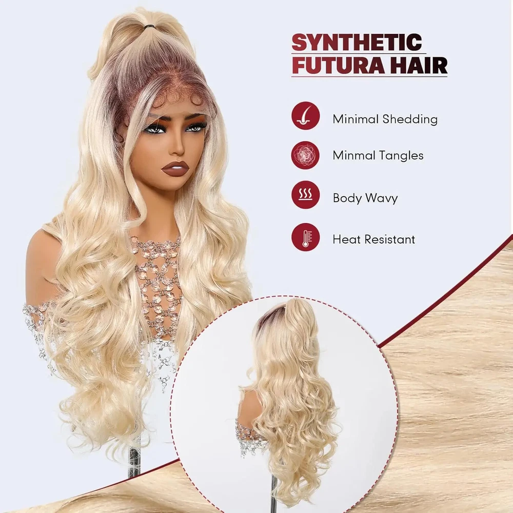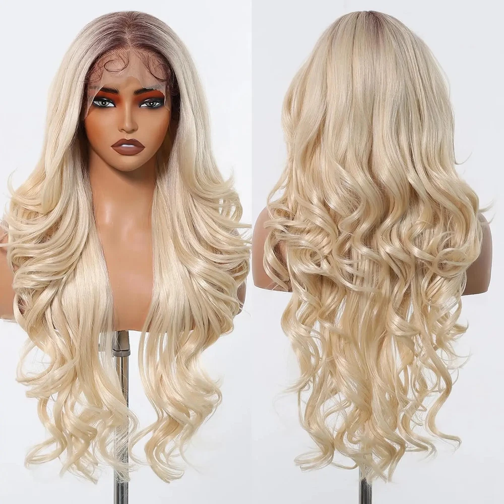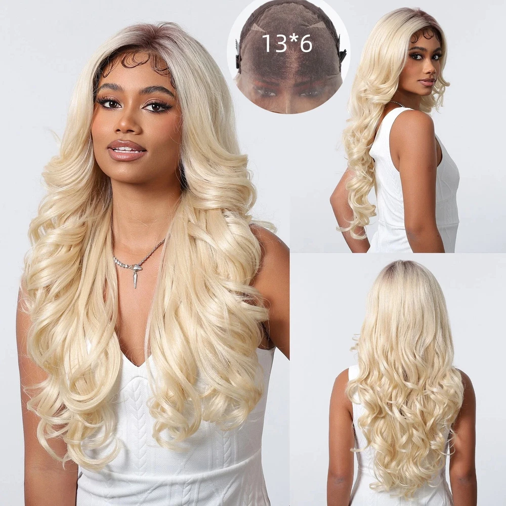 13x6 HD Body Wave Lace Front Wig Highlight Blonde Synthetic Glueless