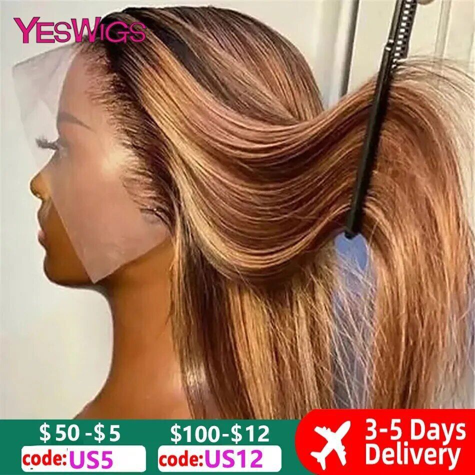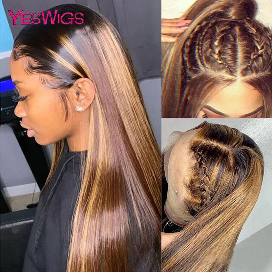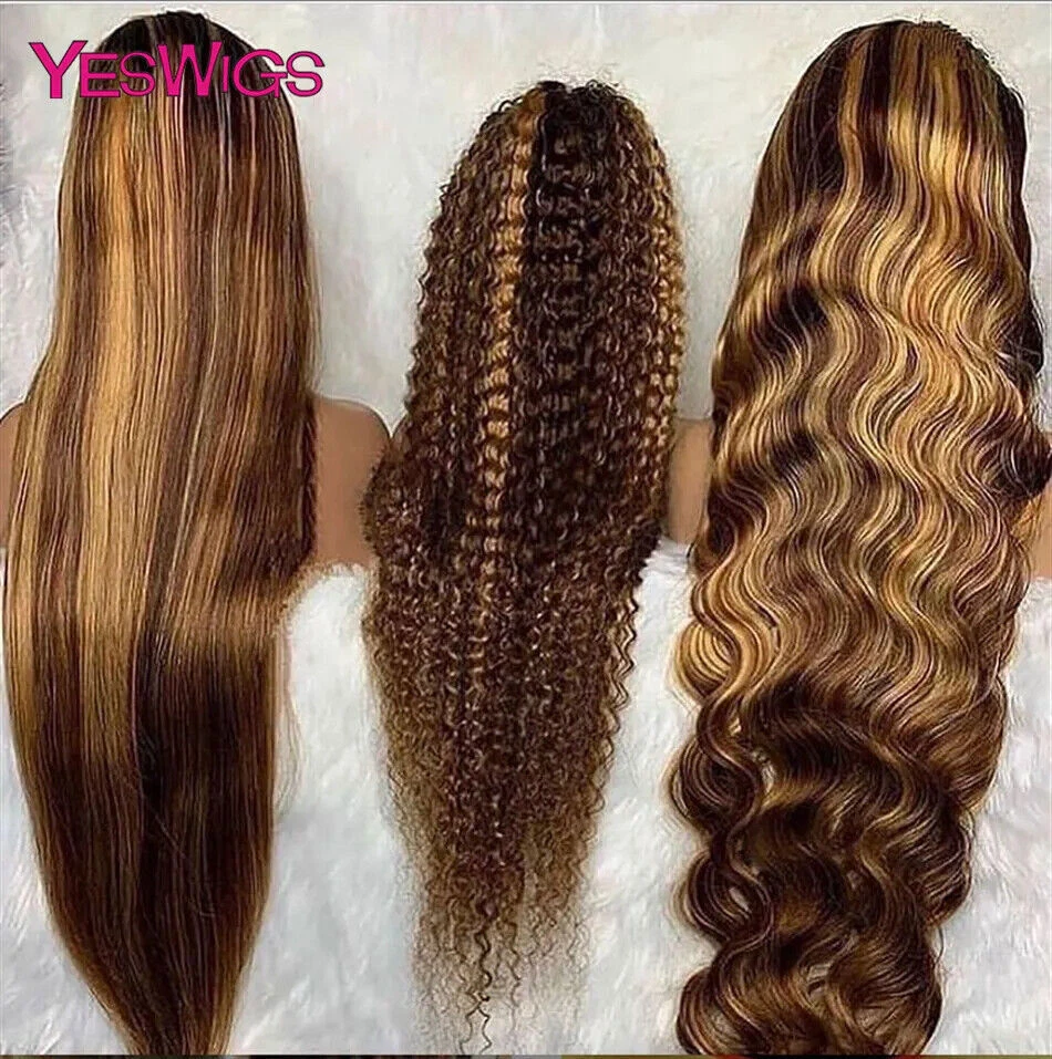 Highlight Wig Human Hair Ombre Honey Blonde Hd Lace Front Wigs For Women Brazilian 13x4 30 Inch Bone Straight Full Frontal Wig all for 1 real and free shipping