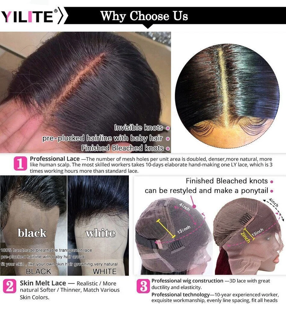 Product Information Hair Material: Body Wave Best Selected Unprocessed Natural Human Hair Cap Size: 22.5" Medium Size Density: 150% & 180% Weight: 100-250g depends on the length Hair Life: No tangle, No Shedding, Low Maintenance,12-24 Months Life with Proper Care Color: Highlight Color Guarantee: 30 Days No Reason Return Customer feedback
