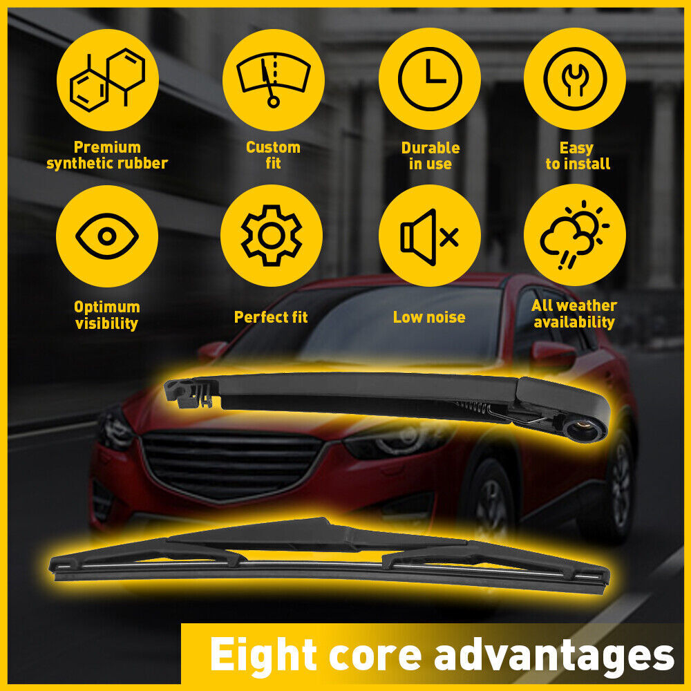 Characteristics of MGT wipers 【Heat and cold resistance】: The wiper can work in high and low temperature environments, ensuring the stability and reliability of the wiping function 【Acid and alkali resistance, corrosion resistance】: The wiper material has good acid and alkali resistance, which can resist the erosion of chemical substances in rain, snow, and dust on the windshield, extending the service life of the wiper 【Fit to the windshield】: A good wiper can tightly fit the windshield, making the wiping effect better. 【Reducing motor burden】: When designing wipers, it is usually considered to reduce the load on the motor, making wiping smoother. Sudabubble Best choice of motor parts Clean Smooth 14''+12'' Rear Wiper Arm Blade Rubber Brushes Rear Windscreen Set Characteristics of MGT wipers 【Heat and cold resistance】 : The wiper can work in high and low temperature environments, ensuring the stability and reliability of the wiping function 【Acid and alkali resistance, corrosion resistance】 : The wiper material has good acid and alkali resistance, which can resist the erosion of chemical substances in rain, snow, and dust on the windshield, extending the service life of the wiper 【Fit to the windshield】 : A good wiper can tightly fit the windshield, making the wiping effect better. 【Reducing motor burden】 : When designing wipers, it is usually considered to reduce the load on the motor, making wiping smoother. 【Low noise】 : The wiper produces low noise during operation and has less interference with the driver. 【Strong water repellency】 : The wiper can effectively remove rainwater from the windshield and maintain a clear driving view. 【Soft and non scratch glass】 : The wiper blade material is soft and will not scratch the windshield, thus protecting the windshield from damage. 【Perfect fit】 The wiper system is tested and adjusted to contact the back glass perfectly. 【High Strength Spring】 High-strength, high-pressure springs are upgraded from ordinary products, and the blades are pressed to fit perfectly into the vehicle. 【Moving freely】 There is enough space for the wiper feeding claw to move up and down a little, and the position can be self-adjusted according to different situations. 【Long service life】 Rear wiper blades are made of wear-resistant natural rubber to ensure smooth and quiet operation, and wiping the edges with special coatings can help extend its service life. Description: ➥ 100% Brand New,never been use ➥ 100% fitment guaranteed ➥ Meets or exceeds OEM safety and durability standards ➥ Delivers smooth, quiet, clean, smear free wiping ➥ Wiping Durability: 1.5 Million Times of Wiping ➥ The bracketless design offers better resistance to ice and snow build-up ➥ The aerodynamic design creates down force preventing blade lift-off ➥ The improved flexible spine design insures maximum screen contact ➥ Temperature Tolerance: +158F to -40F (+70C to -40C) ➥ They are made with premium quality rubber with DuPont coating that offer superior wiping performance and have a much longer lifespan than the conventional rubber type Package includes: ➥ One 14" Rear Wiper Arm ➥ One 12" Rear Wiper Blade For Year and Model, Please Check Compatibility OEM Part number Replace: KD47-67-330, 85241-0E010, 85241-48050, KD4767330, 852410E010, 8524148050, 85242-0E030, 85242-0E020, 85242-48030 852420E030, 852420E020, 8524248030, 85241-48050, 8524148050 Fitment: FOR MAZDA 2013 - 2016 CX5 LEXUS 2004 - 2006 RX330 2007 - 2009 RX350 2006 - 2008 RX400H Note: Please make sure it is suitable for your car before purchase. Please feel free to contact us if you have any questions. We have more models and sizes of wipers, please come to the store to choose from Wish you have a good shopping time~ Item Specifics Brand MGT Position Windshield Type Wiper Arm / Blade Number of Pieces 2 Placement on Vehicle Rear Size 14'' / 12'' Features Good Wiping Performance even at Higher Speeds Features 2 High Wiping Performance and Long Lasting Other Part Number Replace 1510193, KD47-67-330, 85241-0E010, 85241-48050 Color Black Interchange Part Number 85242-0E030, 85242-0E020, 85242-48030 Items Included Set of 14inch & 12inch Wiper Blade Material Rubber/ABS Manufacturer Warranty 2 Years Compatible Wiper Arm Rear Wiper Arm Can be used for 1 FOR 2013 - 2016 MAZDA CX5 Can be used for 2 FOR 2004 - 2006 LEXUS RX330 Can be used for 3 FOR 2007 - 2009 LEXUS RX350 Can be used for 4 FOR 2006 - 2008 LEXUS RX400H Mounting Type Rear Wiper Arm Payment ✎ 1. It will be much appreciated that you finish your payment asap or it will make UPI (unpaid item case) on your account leading to be suspended or restricted by eBay when those UPI cases carry over to certain amount. ✎ 2. Any problems please contact us for more details. Shipping ✌ 1. All items will be shipped to buyer's ebay address. ✌ 2. All items will be shipped within 24-48 working hours upon receipt of payment, and multiple items will be combined shipping. ✌ 3. In most cases, delivery takes around 3-5 business days, it's highly depended on the efficiency of the shpping carrier. If your item doesn't arrive on time, please contact us immediately for further assistance. Please note there is no local pickup service available. Returns ✎ If you are not 100% satisfied with your purchase, you can return the product and get a full refund or exchange the product for another one. Please Note: ✎ Any product you return must be in the same condition you received it and in the original packaging. Contact Us ✎ 1. We care about our valued buyers, if you have any questions, our Customer Service staff will be very glad to help you. We try our best to reply your contact as soon as possible, please kindly allow 24 hours for us to response. ✎ 2. Our goal is to make sure you are a happy buyer and pleasant shopping with us. Please Contact us before leaving any 1 or 2 star ratings, negative feedback or open any dispu