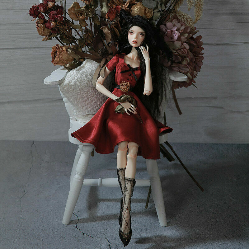 1/4 BJD Doll Girl with Full Outfit Supermodel Face Makeup Eyes Wig