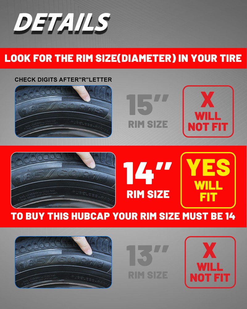 Store Categories Other Car Refrigerator Front Bumper Rear Bumper Fender Flares Inner Fenders Side Steps Running Board A-Pillar Light Mount Brackets Headlights Taillights Fog Lights LED Headlights LED Taillights LED Fog Lights Jeep Chevrolet Ford Toyota Dodge GMC About this item: 🚙Adjustable retaining rings ensure a secure grip and provide support for hubcaps, ensuring they stay in place. Find the curve on the retaining ring and install it to match the tire valve. 🚙Designed on OEM Replica Style - For Replacement with Fast & Easy Snap-on Installation - Made from Premium ABS Material - Lab & Road Tested for Performance. 🚙Wheel covers fit most models of vehicle brands including for Acura, for Chevrolet, for Dodge, for Ford, for Honda, for Hyundai, for Kia, for Mazda, for Mitsubishi, for Nissan, for Subaru, Toyota. 🚙Adjustable Retention Rings assures Firm Grip Gives Support to the Hubcaps Making Sure They Stay in Place. Locate the Curve on the Retention Ring. 🚙One (1) Set : Four (4) Pieces of hubcap are included. Specification: 🚙 Type: Hub caps 🚙 Number in Pack: 4 🚙 Color: Black Lacquer & Blue Lacquer 🚙 Material: ABS 🚙 Compatible Wheel Diameter: 14 in 🚙 Finish: Glossy 🚙 Installation Type: Snap-On 🚙 Model: Universal Hubcap for Iron Wheels Not fit for: 1997-2002 Saturn S Series Coupe 14 Inch Steel Wheel 1991-1995 Saturn S Series Sedan/Wagon 14 Inch Steel Wheel 1991-1996 Saturn S Series Coupe 14 Inch Steel Wheel 1996-2002 Saturn S Series Sedan/Wagon 14 Inch Steel Wheel 2000-2007 Ford Focus 14 Inch Steel Wheel 2000-2007 Ford Focus 14 Inch Spare Steel Wheel Package: 🚙 One set of 4 Hub caps and 4 retention rings Payment Delivery details Terms of sales About us Contact us Payment We accept PayPal, credit card , Apple Pay & Google Pay etc. Delivery details All items will be shipped within 1-3 business days after payment received, we will try our best to ship out as soon as we can, hope for your understanding. Please double confirm your address and contact information, which will help the delivery faster and more accurately. Note :buyers who purchase international products need to pay import tariffs!!! Terms of sales Professional installation is highly recommended. Any problem of the item please feel free to contact us first , please D o Not leave negative feedback before that, or simply return it within 60 Days in original condition. We will resolve it for you ASAP. About us Any questions please do not hesitate to contact us directly by eBay message . We will reply you within 24 hours asap, thanks for your understanding. Contact us Should you have any problem or require any further information please feel free to contact us . If you are satisfied with our product and service, please kindly leave us a positive feedback. Popular Categories On Mar 26, 2025 at 20:26:41 PDT, seller added the following information: