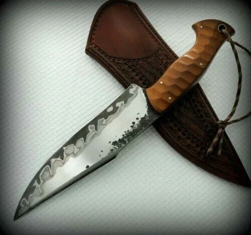 14" CUSTOM HANDMADE D2 TOOL STEEL FIXED BLADE HUNTING BOWIE WITH MICARTA HANDLE Designed & hand made by SS Collectible Blades D2 TOOL STEEL BLADE MICARTA HANDLE OVERALL LENGTH IS 14"(35.56 cm) - BLADE LENGTH IS 8"( 20.32 cm) APPROX. HANDLE LENGTH IS 6"(15.24 cm) APPROX. 4 MM THICK BLADE A WORK OF ART! What a Stunner! This gorgeous bowie knife was designed, and custom made by SS Collectible Blades. Marvelous D2 tool steel blade of the knife is the awesome. Blade was given excellent heat treatment and Rockwell hardness of the blade along its edge is 54 and along the spin is 42-45. 4 mm thick blade has fantastic hand grind . This sheath is not of universal size, but it is made custom just as this custom bowie knife. The bowie knife come with custom made genuine top quality calf skin. Which fits on bowie knife perfectly. The leather sheath is totally hand tooled and sewn. Please write to me in case of any queries. I will be at your service. Thanks. DELIVERY: WITHIN 3 TO 5 DAYS AFTER RECEIVING YOUR PAYMENT COURIER: WE ARE USING DHL first class 5-7 DAYS. REMOTE AREA CUSTOMER MUST PAY 45$ EXTRA SHIPPING AGE RESTRICTION: WE DON'T SELL KNIVES TO ANYONE WHO IS UNDER AGE 18. GUARANTEE: IF YOU ARE NOT HAPPY WITH YOUR PURCHASE, WE OFFER YOU A PEACE OF MIND GUARANTEE IF YOU RETURN THE PRODUCT WITHIN 14 WORKING DAYS. WE WILL REFUND YOUR MONEY BACK IMMEDIATELY ON RECEIVING THE KNIFE BACK IN ORIGINAL CONDITION. DELIBERATE TAMPERING WITH THE PRODUCT OR MISUSE WILL NOT QUALIFY FOR THE REFUND. SHIPPING CHARGES ARE NON-REFUNDABLE. DISCLAIMER: WHEN YOU ARE BIDDING ON THIS KNIFE YOU ARE CONFIRMING US THAT YOUR AGE QUALIFIES FOR THIS PURCHASE AND THIS IS A LEGAL PURCHASE.HAND CUSTOM KNIVES TAKES NO RESPONSIBILITY FOR ANY ILLEGAL PURCHASE. HAND CUSTOM KNIVES IS ALSO NOT RESPONSIBLE FOR INJURY, DEATH OR CRIMINAL ACTS DUE TO THE MISUSE OF OUR PRODUCTS