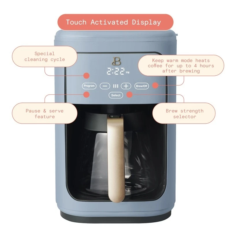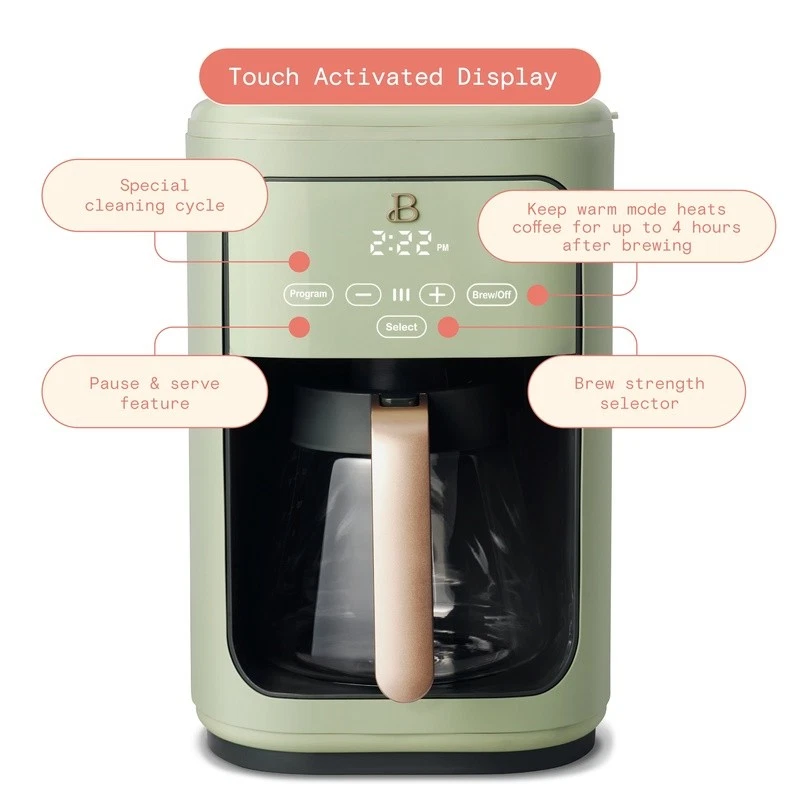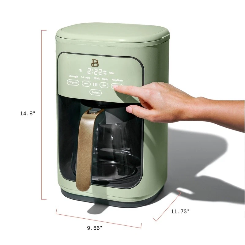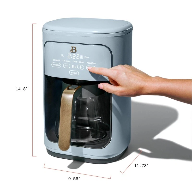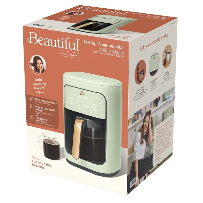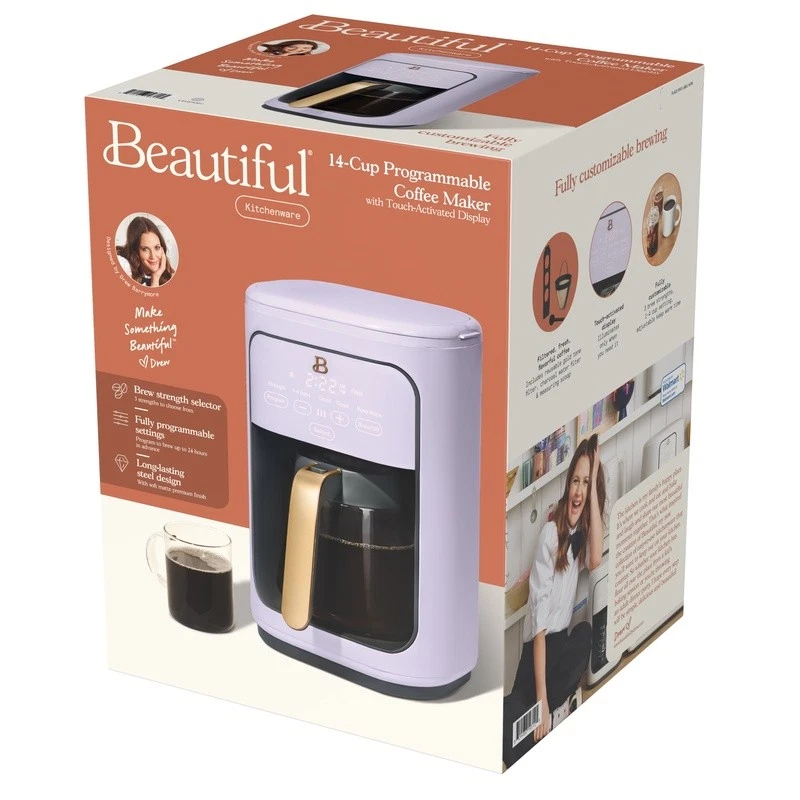 You may also like Faceted Faux Wood Table Lamp Off-White Shade Indoor Lighting Accent Piece New 51.2 USD 53.89 USD Free shipping 5% off Aluminum Framed Round Wall Mirror Lightweight Modern Durable Decorative Wall Art 43.38 USD Free shipping Foldable Rollator Walker W/ Seat Aluminum Mobility Aid Seniors & Disabled New 85.28 USD 91.87 USD Free shipping 7% off Caspian Green 12 Piece Dinnerware Set Ceramic Plates Bowls Dishwasher Safe New 76.79 USD 80.83 USD Free shipping 5% off Durable Twin Metal Bed Frame W/ Under Bed Storage Easy Assembly Heavy Duty New 102.55 USD 107.95 USD Free shipping 5% off Ultra Slim Folding Step Ladder Two Step Utility Stool Compact Design 330lb Max 64.12 USD 67.5 USD Free shipping 5% off 6ft Folding Table Portable Centerfold Sturdy Easy Storage Indoor Outdoor Use 76.61 USD 80.64 USD Free shipping 5% off Waterproof Acrylic Solid Color Coating For Decks Concrete Non-Slip Finish New 57.66 USD 60.7 USD Free shipping 5% off 5-Tier Shoe Cabinet Storage Unit W/ Doors Adjustable Shelves Entryway Closet New 99.39 USD 104.62 USD Free shipping 5% off 100 Cotton Blanket All Season Soft Breathable Herringbone Design Cozy Throw Gift 30.98 USD Free shipping Tempered Glass Console Table Sturdy Metal Frame Multifunctional Indoor Storage 84.63 USD 89.08 USD Free shipping 5% off Extra Large 20 Gallon Kitchen Trash Can Step Bin Foot Pedal Touchless Disposal 47.66 USD 50.94 USD Free shipping 6% off Delicious, flavorful coffee for your whole day. Brew 14 cups in under 14 minutes with the 14-Cup Programmable Coffee Maker with Touch-Activated Display. Thoughtfully designed, the Coffee Maker is easy to use with a soft-glow display that illuminates only when you need it. Created by Drew Barrymore, Kitchenware combines elegant design and contemporary colors for high-performance appliances that look beautiful on your kitchen counter. Condition: new. Made with long-lasting steel accents featuring a premium soft matte finish A powerful 1200-watt system brews extra hot coffee without compromising flavor Programmable up to 24 hours in advance for coffee that's ready when you are Customizable brew strength with regular, gourmet, and bold options Dishwasher-safe, borosilicate glass carafe with a no-drip, perfect-pour spout Brew smaller batches with full-bodied, 10-cup taste using the 1-4 cup feature Replaceable charcoal water filter ensures optimal freshness The special cleaning cycle extends product life while optimizing flavor An ergonomic handle adds comfort and ease Adjustable automatic shut-off feature increases safety with settings from 30 minutes to 4 hours Convenient keep warm mode heats coffee for up to 4 hours after brewing No-wait pause and serve feature enables pouring while brewing Nonstick, stain-resistant warming plate Condition: new Includes: Reusable gold filter basket Charcoal water filter Measuring scoop You may also like Queen Raised Air Mattress W/ Built-in Pump Headboard Portable Comfort Sleep New 105.89 USD 137.6 USD Free shipping 23% off Collapsible Rolling Cart W/ Adjustable Handle Magnetic Lid & 360° Wheels New 14.52 USD 15.28 USD Free shipping 5% off Stylish Two-Tier Nightstand Wooden Bedside Table W/ Rattan Drawer Storage New 49.99 USD 53.99 USD Free shipping 7% off Electric Coffee Percolator 12 CUP Coffee Pot Stainless Steel Auto Keep Warm New 63.46 USD 66.8 USD Free shipping 5% off Heavy-Duty Stackable Plastic Storage Bins W/ Lids Garage Tools Organization New 24.1 USD 25.37 USD Free shipping 5% off Cast Iron 44 Lbs Kettlebell Non Slip Handle Weight Training Strength Set New 37.47 USD 39.44 USD Free shipping 5% off Sturdy Flat Weight Bench Home Gym Strength Training Upper Body Workouts New 52.49 USD 56.68 USD Free shipping 7% off Heavy Duty Weatherproof Mailbox W/ Key Lock Large Capacity Wall Mount Design New 39.2 USD 41.26 USD Free shipping 5% off Dovetail Sight Pusher Tool Glock Sig Sauer H&K S&W Handgun Adjustments New 27.44 USD 28.88 USD Free shipping 5% off Locking Security Mailbox USPS Approved Anti-Theft Parcel Drop Steel Construction 134.08 USD 141.14 USD Free shipping 5% off Adjustable Gaming Chair W/ Flip-Up Armrests & Comfortable Lumbar Support New 130.95 USD 164.9 USD Free shipping 21% off Whole Kernel Corn Canned Vegetables Pack of 4 Non-GMO Shelf-Stable Ready to Use 9.94 USD 11.14 USD Free shipping 11% off