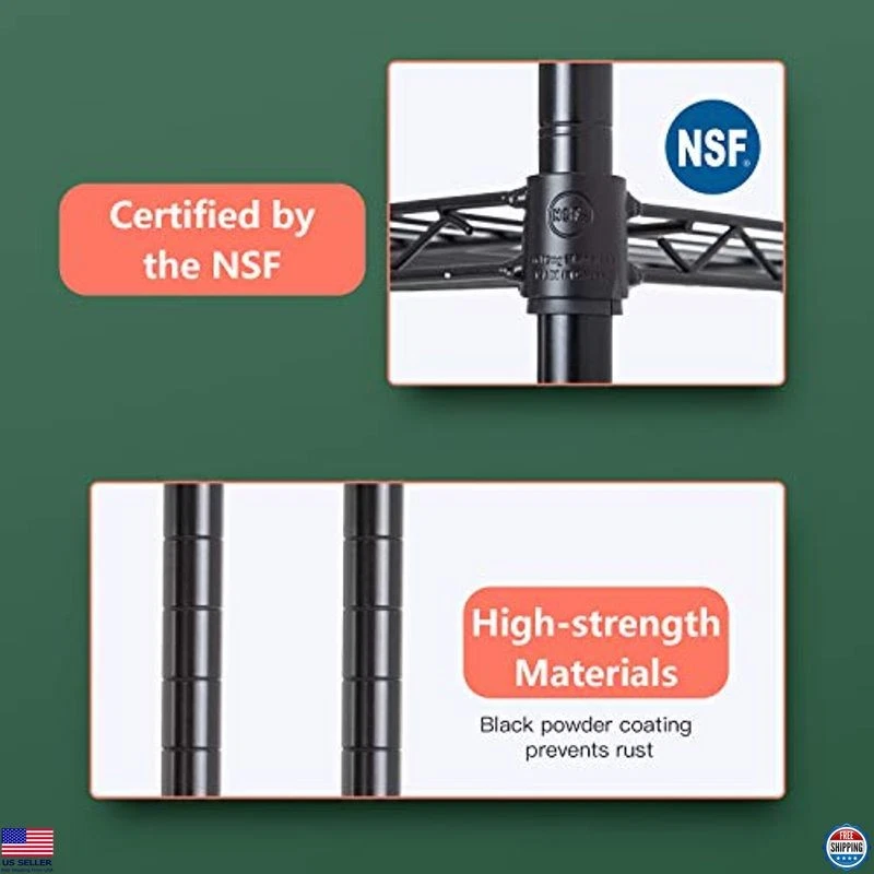 FDW 14" D×36" W×72" H Wire Shelving Unit Commercial Metal Shelf with 5 Tier Adjustable Layer Rack Strong Steel for Restaurant Garage Pantry Kitchen Garage,Black Description Maximize your storage potential with the FDW 14" D x 36" W x 72" H Wire Shelving Unit. This robust 5-tier adjustable metal shelf is perfect for commercial spaces like restaurants and garages, as well as home kitchens and pantries. Crafted from strong steel with a sleek black finish, it combines durability and style, making it an essential addition to any organization project. Product reference: B08X6H327R. Features ✔【Strong Weight Capacity】The weight limit of the floor is 250 pounds per floor and the total weight limit of the floor is 1250 pounds. ✔【Large Space】The 5-tier design (with a big size of 36 x 14 x 72 inch) can easily help you to make a neat kitchen. The wire shelf between each layer is adjustable, enabling you to store items of various sizes with ease. This shelving unit provides ample space to organize tools, household items, or office supplies. ✔【Adjustable Height】 Enjoy a completely customizable metal shelving unit. The build allows for height adjustments - giving you the freedom to adjust accordingly to your needs. Comes with easy adjustable clips to secure and stabilize each shelf. The multi-purpose shelf rack is perfect for garage shelving, kitchen storage, pantry shelving, and more. ✔【Extremely Durable】Made of heavy steel, with excellent rust resistance and oxidation resistance.Enables you to use it longer. ✔【EASY TO ASSEMBLE】: The storage shelves is easy to assemble. This wire shelf structure is very simple, No tools required to assemble it. The wire shelving unit is simple to assemble, You only need to spend 15min to install. Shipping Free & Fast Shipping: We offer free shipping to most of the USA with a normal delivery time of 3-7 days. However, due to the current situation, additional delivery time (up to 3 weeks) may be required for some items. Alternative Carriers: We may use alternative carriers (e.g., USPS, FedEx, UPS) to ensure your package arrives safely and on time. Due to the use of multiple carriers, we are unable to provide a tracking number automatically. Handling Time: Orders are processed and shipped within 1-2 business days of receiving cleared payment. Shipping Restrictions: Shipping to Alaska, Hawaii, Puerto Rico, Guam, and other US territories may incur shipping charges or delivery restrictions. Please contact us before ordering, or your order can be refunded/cancelled. State Restrictions: Certain items may not be shipped to California due to state regulations. Contact for Tracking Updates: If you require tracking updates or have any concerns about the delivery of your order, please feel free to contact us, and we will be happy to assist you. Return Policy 30-Day Hassle-Free Returns: If you are not completely satisfied with your purchase, you can return the item for free within 30 days of receiving it for a full refund or exchange. Easy Return Process: Contact us, and we will provide you with a prepaid return shipping label and detailed instructions. No Restocking Fee: There are no restocking fees for returns. However, the buyer is responsible for return shipping costs if the return is not due to a seller's error. Refund Processing: Refunds will be processed within 1 business day of receiving the returned item in its original condition. Payment We accept all major credit cards, PayPal, and Pay for your convenience. Your payment information is secure and encrypted to ensure a safe and seamless transaction. Please complete yo...