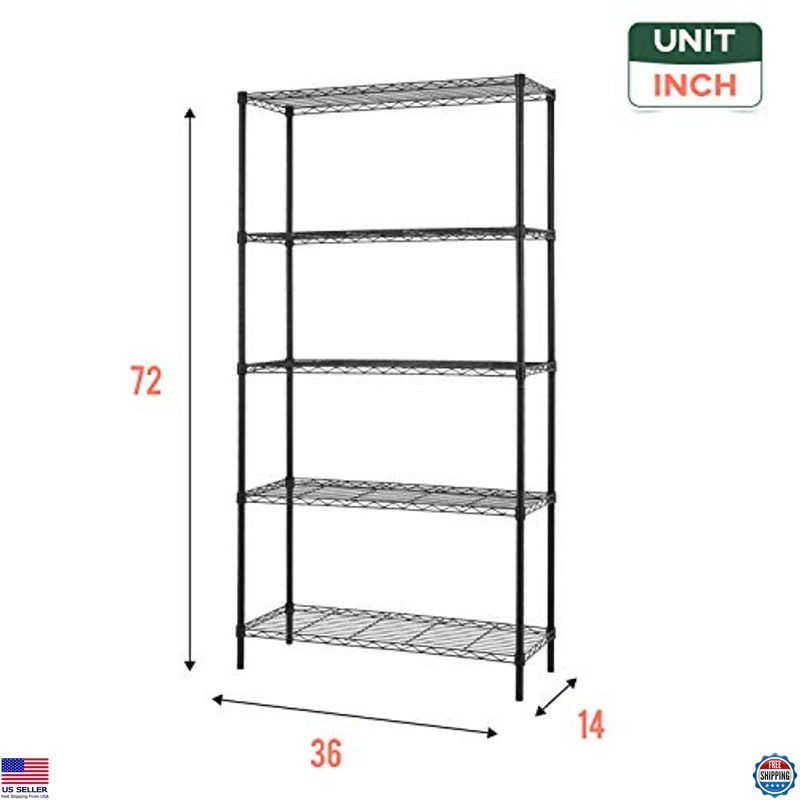 14" D x 36" W x 72" H 5-Tier Metal Wire Shelving Unit for Garage, Kitchen,