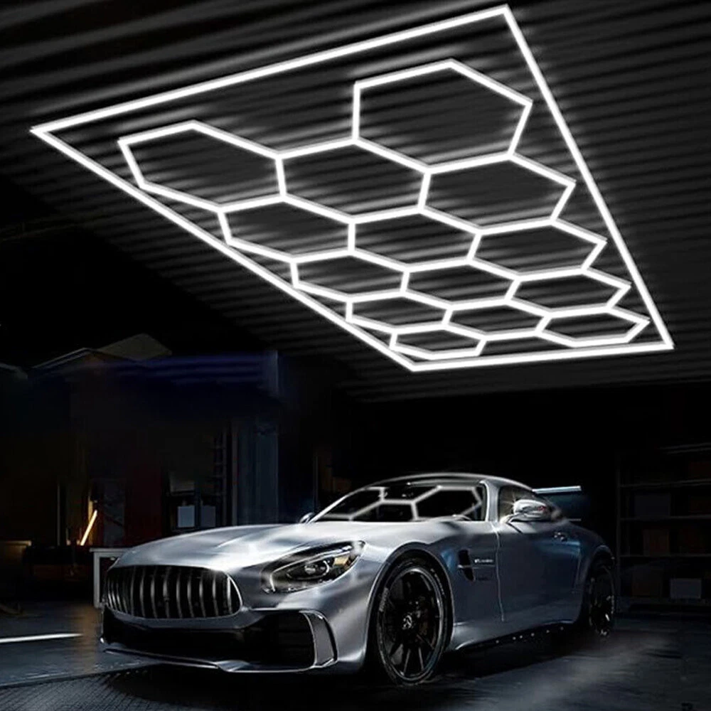 14 Grid LED Hexagon Garage Lights Car Detailing Shop Light for Basement Workshop