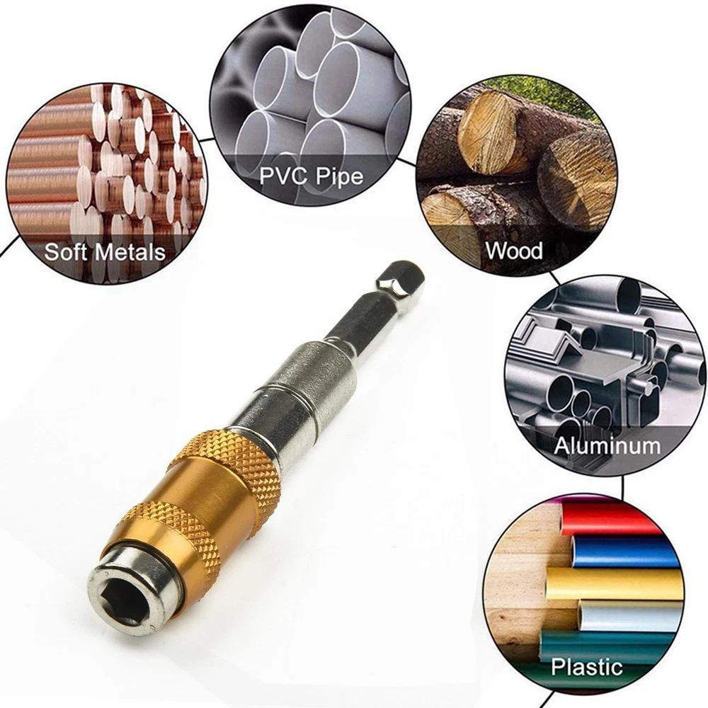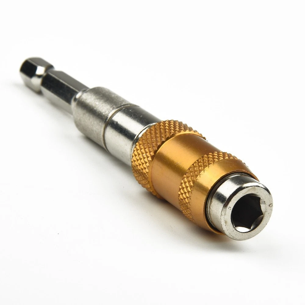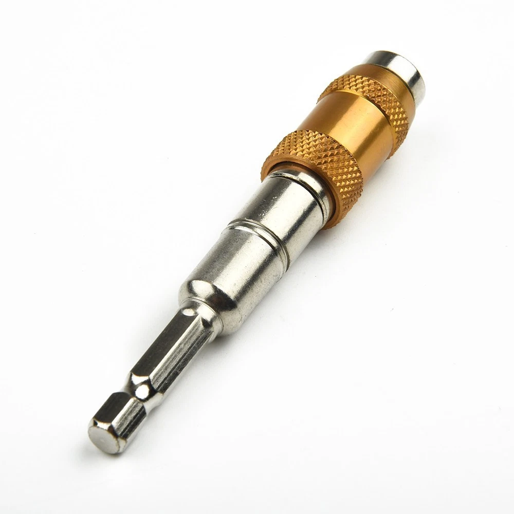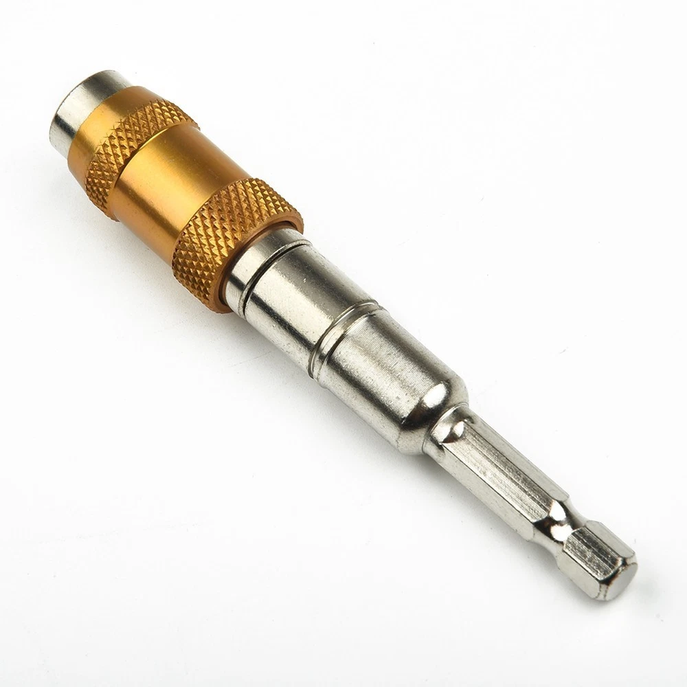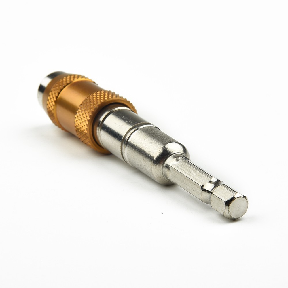 Product Description Features: * brand new and high quality. *Pivoting Drill Bit: Designed with alocking collar, allowing toflex up to 20 degreesfor eitherstraight or angled driving.Effectively prevents breakage. *No More Limitation: Perfectly pivots to fittight spaces and corners. *Premium Material: Made of engineered steel for maximum strength and flexibility. Qualified for cordless tools up to In/lbs of torque. *Magnetic Lock: Engineered with a strong permanent neodymium magnetfor fastener retention- minimizes drops andreduces wobbling!Simply slide the sleeve forward to release the bit. *: Designed for use in Drivers and Wrenches. Used for Extending all kinds of screwdriver bits, drill, batch head, screwdriver head, etc. Specifications: *Material: metal *Length:87mm(Approx.) *Head Type:1/4'' Hex Shank *Optional Color: silver, black, red, gold Package Contents: 1*Magnetic Screw Drill Tip Note: The real color of the item may be slightly different from the pictures shown on website caused by many factors such as brightness of your monitor and light brightness. Payment Payment must be completed within 5 days. If you have any problems about payment, please contact us via ebay message. Delivery details We only ship to confirmed ebay Order addresses. Please comfirm that your Order address is in line with your shipping address. Please kindly note that the c ombined shipping is not provided because the shipping fee is calculated by weight. Also, the each additional item means exactly the the same color and size. It takes about 7 -15 working days to US; about 10-30 working days to other countries. Transit time may be a little delayed because of the bad weather and customs inspection . If you do not receive your item within 30 working days since payment finished, please contact us immediately for further assistance. Contact us We strive for 100% customer satisfaction! Positive Feedback is very important to us. If you have any questions, p lease feel free to contact us via "Ask seller a question" . We will reply your email within 24 working hours.