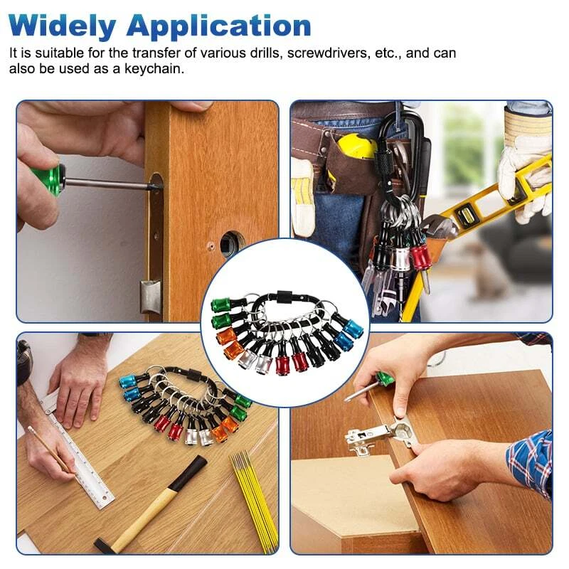 Product D escription 14/28PCS 1/4" H ex H andle Q uick R elease K eychain S crewdriver D rill H older S et Product Characteristics High Q uality I ndustrial G rade M aterials: This extension rod is made of high quality aluminum alloy and is durable. Easy T o U se: The keychain features a flat, thick, rounded design that makes it easy to pick up and replace screwdriver bits with one hand. Smooth surface processing and key chain can avoid the accidental drop of tools, easy to work at altitude. The powerful ball lock can carry tools weighing around 500G. Easy T o C arry: Small and portable, easy to carry. The product comes with a chain link, which can be hung on the belt. The large diameter flat ring is easy to install on the chain link. You can use your favorite chain keychain according to your needs. Strong C ompatibility: Expand a variety of screwdriver bits, screwdriver bit conversion purpose universal 1/4" hex shank head, suitable for most electric drives, hand-held drives and screwdriver bits. It is suitable for the connection of screwdriver drill, screwdriver, batch and so on. Product Specification Status: 100% Brand New Material: Aluminum A lloy Aperture: 1/4" (6.35mm) Quantity: 12PCS Package Included 12/24 PCS S crewdriver E xtension R od 2/4PCS K ey C hain Attention P lease 1. Please allow manual measurement error of 1-5mm. Make sure you don't mind before you buy. 2. Due to lighting effects, brightness contrast Settings of the display, etc., there may be some slight differences in the hue of the picture and the actual item, please make sure you don't mind.