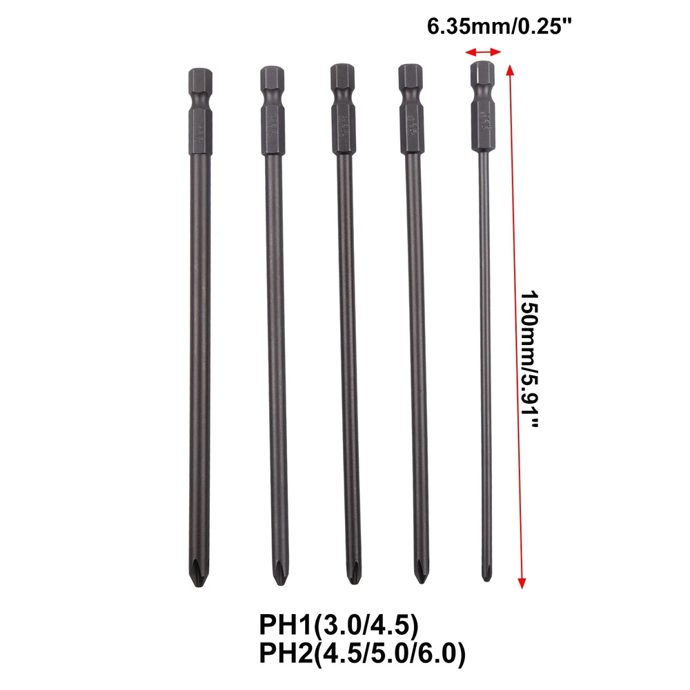 Tool Screwdriver Bits 1/4Inch 150mm Long 5Pcs Bits Cross Screwdriver PH1 DESCRIPTION Features: *These bits are made of Steel material, large moment of force and high toughness. *The netic head of the bit is convenient to use and not slip. *With 6.35mm(1/4Inch) hex shank, they are widely used on air screwdrivers, electric drills, .. *Easy to carry, economical and. Specifications: Product name: Screwdriver Bits Material: Steel Color: for Silver Type: Cross screwdriver Model: PH1, PH2 Size: PH1(3.0/4.5), PH2(4.5/5.0/6.0) Length:(Approx.) 150mm Shank: 6.35mm(1/4Inch) Suitable for: Air screwdrivers, electric drills, .. Quantity: 5Pcs/Set Package Contents: 5× Screwdriver Bits Note: 1.Transition: 1cm=10mm=0.39inch. 2. The real color of the item may be slightly different from the pictures shown on website caused by many factors such as brightness of your monitor and light brightness. 3. Please allow slight manual measurement deviation for the data. POLICES Shipping Payment WARRANTY We only ship to confirmed ebay Order addresses. Please comfirm that your Order address is in line with your shipping address. Please kindly note that the c ombined shipping is not provided because the shipping fee is calculated by weight. Also, the each additional item means exactly the the same color and size. It takes about 7 -15 working days to US; about 10-30 working days to other countries. Transit time may be a little delayed because of the bad weather and customs inspection . If you do not receive your item within 30 working days since payment finished, please contact us immediately for further assistance. Payment must be completed within 5 days. If you have any problems about payment, please contact us via ebay message. We strive for 100% customer satisfaction! Positive Feedback is very important to us. If you have any questions, p lease feel free to contact us via "Ask seller a question" . We will reply your email within 24 working hours.