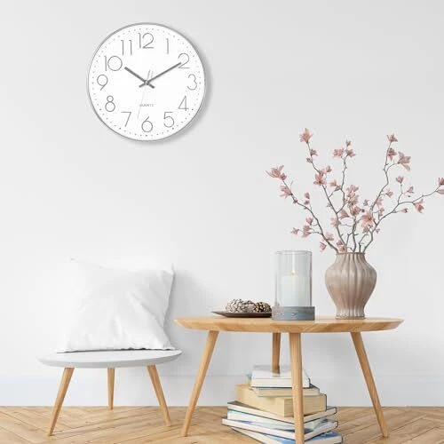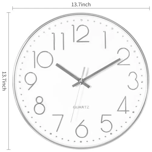 Return Policy Fast Delivery Trusted seller 14 Inch Wall Clock, Large Silent Non-Ticking Silver Wall Clock Battery Operated Round Quartz Modern Wall Clock Decorative for Living Room Bedroom Kitchen Home Office Product Description Non-ticking Mechanism: Precise quartz sweep movement s accurate time and absolutely silent environment, suitable for meeting room, guest room, classroom, kitchen and any other places which needs a silent environment. Elegant Design: Silver color frame makes it the perfect decorative wall clock for office, living room, classroom, bedroom, bathroom. Unlike other using cardboard as clock background that easy damaged in moisture and wet season, this clock back base are made of solid plastic, tfore remain well function and dry in any weather condition. Easy to Read: Silent wall clock with large numbers are clear to read, front glass cover s perfect view and keeps dust away from dial. Battery Powered: Requires 1 AA zinc carbon battery (not included). Alkaline battery or rechargeable battery which may have influence on the life span of clock movement, as well as the accuracy of the time. Easy to Hang: Come with a hook, wide slot in back for easy hanging. Shipping Returns Payment Shipping Shipping is FREE to all addresses other than APO/PO boxes in the lower 48 states. All our stock ships from US-based warehouses. Shipped via USPS or UPS (depending on location and package weight) Unless stated otherwise, all orders will ship within 24-72 hours of your payment being processed. Check our feedback to see the great reviews of FAST shipping we offer. Returns Seller does not accept returns Payment We currently accept payment via eBay managed payments only. Once payment is cleared, we will dispatch your shipment within 1-3 business days. Please refer to the "Shipping" tab for more information regarding shipping speed to your destination.