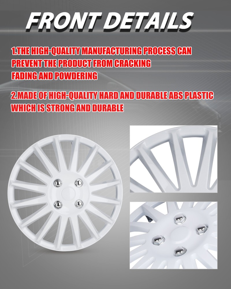 Store Categories Other Car Refrigerator Front Bumper Rear Bumper Fender Flares Inner Fenders Side Steps Running Board A-Pillar Light Mount Brackets Headlights Taillights Fog Lights LED Headlights LED Taillights LED Fog Lights Jeep Chevrolet Ford Toyota Dodge GMC Hub caps Features ❗❗ PERFECT FIT: This wheel hub cap is specifically designed to perfectly fit for 14-inch wheels, ensuring a seamless match and enhanced aesthetics. It complements the overall design of the vehicle, elevating its visual appeal. ❗❗ HIGH-QUALITY MATERIAL: Constructed from high-quality materials, this wheel hub cap guarantees durability and longevity. It withstands various road conditions and environmental factors encountered during daily driving, maintaining its pristine condition. ❗❗ EASY INSTALLATION: Installing this wheel hub cap is a breeze and requires no specialized tools or modifications. It comes with a user-friendly system, allowing for a hassle-free installation process by following the provided instructions. ❗❗ PROTECTIVE FUNCTION: Besides its aesthetic appeal, this wheel hub cap serves as a protective barrier for the wheels. It prevents scratches and potential damage caused by stones, debris, or other objects, safeguarding the wheel's surface. ❗❗ AFTER-SALES SERVICE: If There Is a Loss of Product Parts, or Any Parts of The Problem, We Can Provide After-Sales Service, Please Contact Us on The Order Page. Hub caps Specification ❗❗ Type: Hub caps ❗❗ Number in Pack: 4 ❗❗ Color: White Lacquer ❗❗ Material: ABS ❗❗ Compatible Wheel Diameter: 14 in ❗❗ Finish: Glossy ❗❗ Installation Type: Snap-On ❗❗ Model: Universal Hubcap for Iron Wheels Hub caps Package ❗❗ 1 Set of 4 Hub caps and 4 retention rings Payment Delivery details Terms of sales About us Contact us Payment We accept PayPal, credit card , Apple Pay & Google Pay etc. Delivery details All items will be shipped within 1-3 business days after payment received, we will try our best to ship out as soon as we can, hope for your understanding. Please double confirm your address and contact information, which will help the delivery faster and more accurately. Note :buyers who purchase international products need to pay import tariffs!!! Terms of sales Professional installation is highly recommended. Any problem of the item please feel free to contact us first , please D o Not leave negative feedback before that, or simply return it within 60 Days in original condition. We will resolve it for you ASAP. About us Any questions please do not hesitate to contact us directly by eBay message . We will reply you within 24 hours asap, thanks for your understanding. Contact us Should you have any problem or require any further information please feel free to contact us . If you are satisfied with our product and service, please kindly leave us a positive feedback. Popular Categories On Apr 9, 2025 at 00:03:33 PDT, seller added the following information: