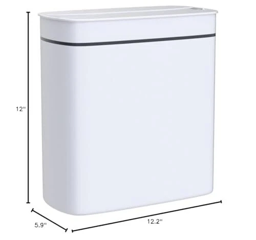 【AUTOMATIC TRASH CAN】Our touch free trash can used high technology induction device, whether it is sensing the proximity of a human hand or an object, You can also touch the trash can with your feet or hands,it can respond quickly to open the lid of the trash can, and automatically close the lid within 6 seconds after the trash is thrown in. 【BATHROOM TRASH CAN】Please install the battery before using this sensor automatic trash can,powered by 2 AA batteries (not included)and at the same time use waterproof and moisture-proof materials, it will not affect your use in the bathroom. 【FITS ALMOST ANYWHERE】 A stylish trash can with a modern slim design that looks great and easily fits into narrow openings and small spaces. Fits well in bathrooms, offices or wherever space is limited. 【Large Capability】The 3.6 Gallon (equal to 14 Liter) capability garbage bin can absolutely meet your daily need. it also suitable for living room, bedroom, and office or other various occasion. 【Dimension】12.2"W x 5.9"D X 12"H.This trash can makes a statement with its stylish colors and unique finishes and was designed to enhance your existing décor.The classic and simple design will never out of fashion.