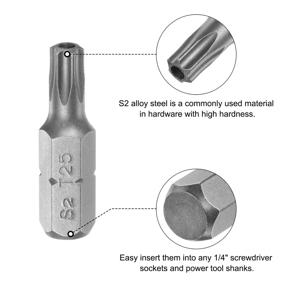 Document Description:* These Screwdriver Bits are with magnetic design.* Easy to install on the screwdriver handle with double ear on the sides of the bit shank.* Great replacement for missing, bent or broken torx screwdriver bits.* Superior Quality: Those Torx Screwdriver Bits are made of S2 alloy steel, which is a commonly used material in hardware with high hardness.* Magnetic Screwdriver - Those bits fit for electric screwdrivers, hand screwdrivers, electric drills, air drills and so forth.Features:Hex Shank Size: 1/4-inchTotal Length: 25mm / 1-inchBit Type: T25Surface Treatment: SandblastingMaterial: S2 Alloy SteelPackage Content: 1pcs x Torx Screwdriver Bit Torx Bits 1/4" Magnetic Screwdriver T25 Screw Driver Bit S2 Alloy Steel Description: * These Screwdriver Bits are with magnetic design. * Easy to install on the screwdriver handle with double ear on the sides of the bit shank. * Great replacement for missing, bent or broken torx screwdriver bits. * Superior Quality: Those Torx Screwdriver Bits are made of S2 alloy steel, which is a commonly used material in hardware with high hardness. * Magnetic Screwdriver - Those bits fit for electric screwdrivers, hand screwdrivers, electric drills, air drills and so forth. Features: Hex Shank Size: 1/4-inch Total Length: 25mm / 1-inch Bit Type: T25 Surface Treatment: Sandblasting Material: S2 Alloy Steel Package Content: 1pcs x Torx Screwdriver Bit Hot Item Payment 1.We accept eBay payment . 2.Payment must be received within 7 business days of auction closing. Shipping 1.We ship to your eBay or Paypal address. Please make sure your eBay and Paypal address is correct before you pay. 2.Items will be shipped within 1-3 business day when we received payment. 3.Delivery time depends on destination and other factors. Description Policy Torx Bits 1/4" Magnetic Screwdriver T25 Screw Driver Bit S2 Alloy Steel Description: * These Screwdriver Bits are with magnetic design. * Easy to install on the screwdriver handle with double ear on the sides of the bit shank. * Great replacement for missing, bent or broken torx screwdriver bits. * Superior Quality: Those Torx Screwdriver Bits are made of S2 alloy steel, which is a commonly used material in hardware with high hardness. * Magnetic Screwdriver - Those bits fit for electric screwdrivers, hand screwdrivers, electric drills, air drills and so forth. Features: Hex Shank Size: 1/4-inch Total Length: 25mm / 1-inch Bit Type: T25 Surface Treatment: Sandblasting Material: S2 Alloy Steel Package Content: 1pcs x Torx Screwdriver Bit Hot Item Payment 1.We accept eBay payment . 2.Payment must be received within 7 business days of auction closing. Shipping 1.We ship to your eBay or Paypal address. Please make sure your eBay and Paypal address is correct before you pay. 2.Items will be shipped within 1-3 business day when we received payment. 3.Delivery time depends on destination and other factors.