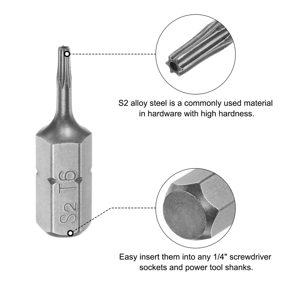 Document Description:* These Screwdriver Bits are with magnetic design.* Easy to install on the screwdriver handle with double ear on the sides of the bit shank.* Great replacement for missing, bent or broken torx screwdriver bits.* Superior Quality: Those Torx Screwdriver Bits are made of S2 alloy steel, which is a commonly used material in hardware with high hardness.* Magnetic Screwdriver - Those bits fit for electric screwdrivers, hand screwdrivers, electric drills, air drills and so forth.Features:Hex Shank Size: 1/4-inchTotal Length: 25mm / 1-inchBit Type: T6Surface Treatment: SandblastingMaterial: S2 Alloy SteelPackage Content: 1pcs x Torx Screwdriver Bit Torx Bits 1/4" Magnetic Screwdriver T6 Screw Driver Bit S2 Alloy Steel Description: * These Screwdriver Bits are with magnetic design. * Easy to install on the screwdriver handle with double ear on the sides of the bit shank. * Great replacement for missing, bent or broken torx screwdriver bits. * Superior Quality: Those Torx Screwdriver Bits are made of S2 alloy steel, which is a commonly used material in hardware with high hardness. * Magnetic Screwdriver - Those bits fit for electric screwdrivers, hand screwdrivers, electric drills, air drills and so forth. Features: Hex Shank Size: 1/4-inch Total Length: 25mm / 1-inch Bit Type: T6 Surface Treatment: Sandblasting Material: S2 Alloy Steel Package Content: 1pcs x Torx Screwdriver Bit Hot Item Payment 1.We accept eBay payment . 2.Payment must be received within 7 business days of auction closing. Shipping 1.We ship to your eBay or Paypal address. Please make sure your eBay and Paypal address is correct before you pay. 2.Items will be shipped within 1-3 business day when we received payment. 3.Delivery time depends on destination and other factors. Description Policy Torx Bits 1/4" Magnetic Screwdriver T6 Screw Driver Bit S2 Alloy Steel Description: * These Screwdriver Bits are with magnetic design. * Easy to install on the screwdriver handle with double ear on the sides of the bit shank. * Great replacement for missing, bent or broken torx screwdriver bits. * Superior Quality: Those Torx Screwdriver Bits are made of S2 alloy steel, which is a commonly used material in hardware with high hardness. * Magnetic Screwdriver - Those bits fit for electric screwdrivers, hand screwdrivers, electric drills, air drills and so forth. Features: Hex Shank Size: 1/4-inch Total Length: 25mm / 1-inch Bit Type: T6 Surface Treatment: Sandblasting Material: S2 Alloy Steel Package Content: 1pcs x Torx Screwdriver Bit Hot Item Payment 1.We accept eBay payment . 2.Payment must be received within 7 business days of auction closing. Shipping 1.We ship to your eBay or Paypal address. Please make sure your eBay and Paypal address is correct before you pay. 2.Items will be shipped within 1-3 business day when we received payment. 3.Delivery time depends on destination and other factors.