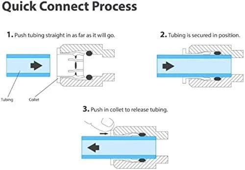 1/4" OD Quick Connect Push In to for RO Water Reverse White, Blue Product Details Material: POM Brand: Liimevvon Color: White, Blue Connector Type: Tee Exterior Finish: Copper Item Weight: 5.43 ounces Number of Pieces: 20 Manufacturer: Lemoy Part Number: YUHENG046 Item Weight: 5.4 ounces Package Dimensions: 5.94 x 4.53 x 1.73 inches Item model number: YUHENG046 Is Discontinued By Manufacturer: No Item Package Quantity: 1 Measurement System: inch Batteries Included?: No Batteries Required?: No Material: POM Brand: Liimevvon Color: White, Blue Connector Type: Tee Exterior Finish: Copper Item Weight: 5.43 ounces Number of Pieces: 20 Manufacturer: Lemoy Push fit fittings,Quick Connect Fitting 1/4" RO Water System Standard fitting for water filter systems using 6mm water filter tubing No tools required,Push fit fittings Easy to use,Mini quick connect push tee 1/4-Inch OD Applications include RO system beverage dispensing refrigerator ice maker coffee machine etc Where to use it ? Applications include RO system, beverage dispensing, refrigerator ice maker, coffee machine etc. How to use it ? Just pop in your 1/4" tubing into tubing end, pushing until it won't go in. To remove, just push in the outer circle on either end and pull right out. You need to make sure the tubing is cut squared to insure no leaks. The fitting ensures an easier working environment in confined places, is approved for behind the wall installations, and removes the need for hot works on site. Push-fit plastic fitting for the connection of plastic, copper, and CPVC pipe. Simply push the fitting fully onto the pipe and twist the plastic nut clockwise to lock in place.