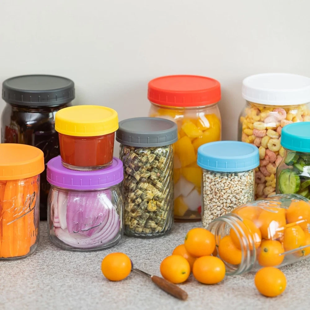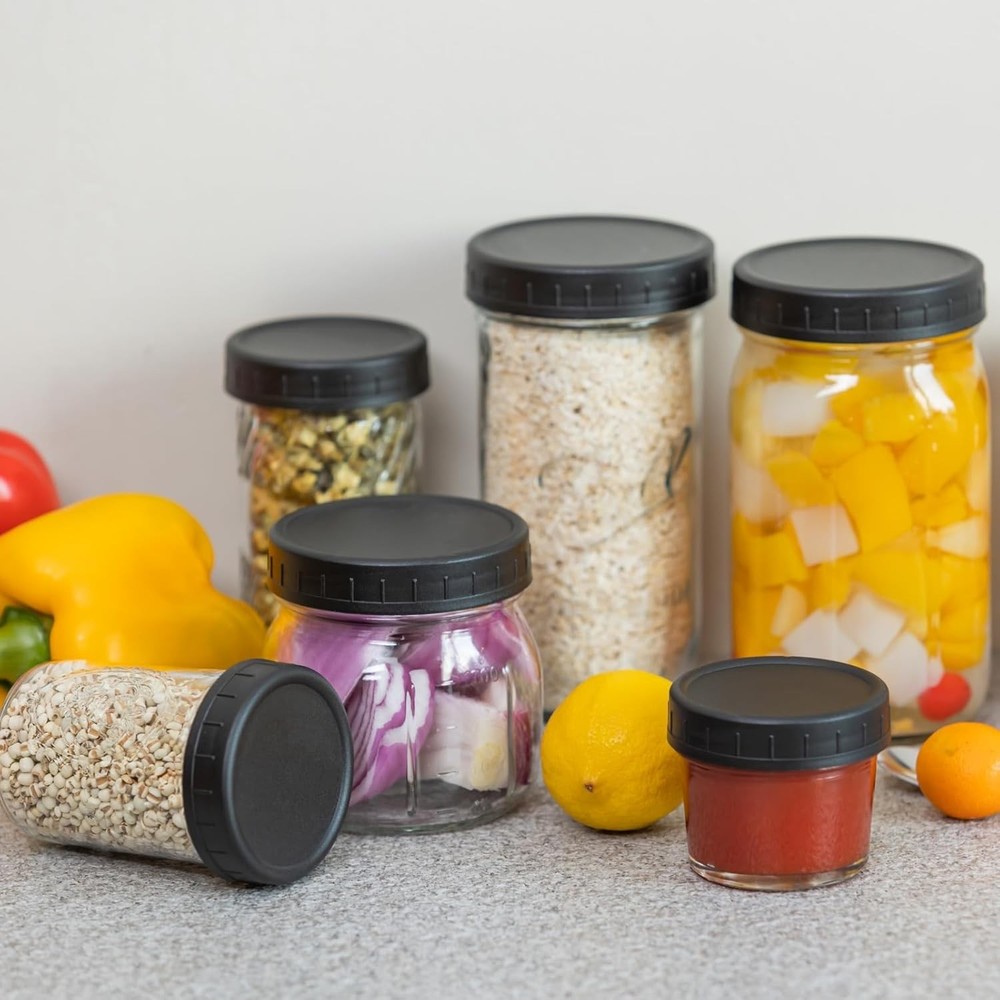 14 Pack Black Plastic Mason Jar Lids with Silicone Rings, 7 Wide Mouth