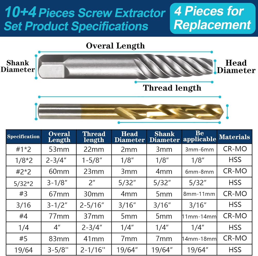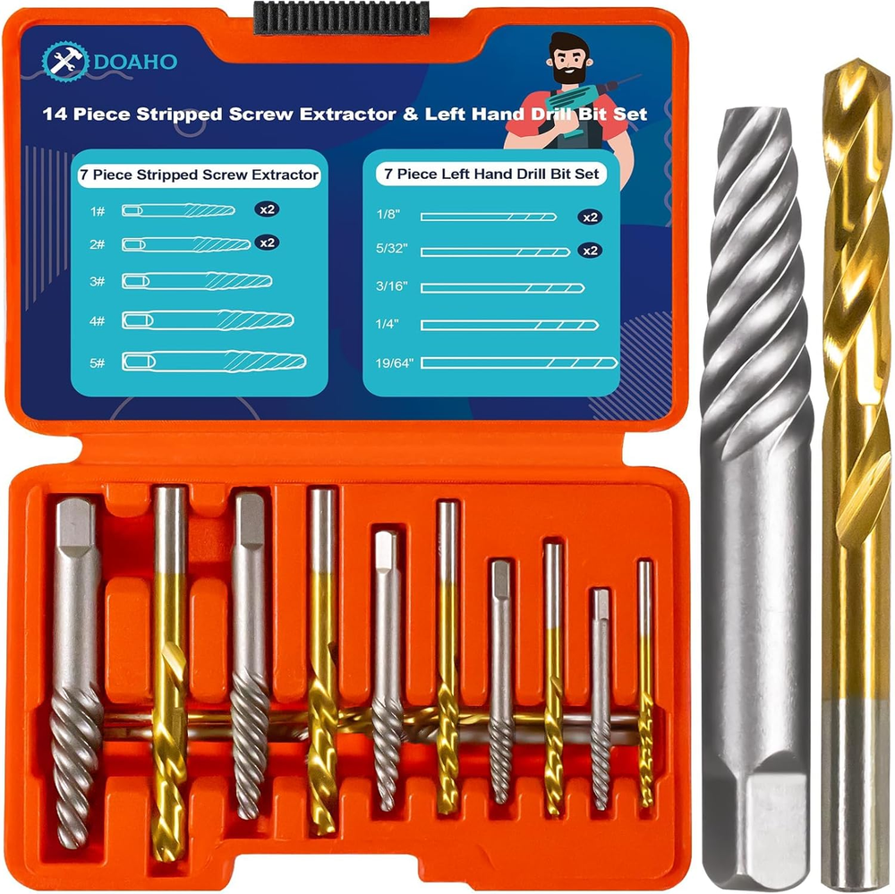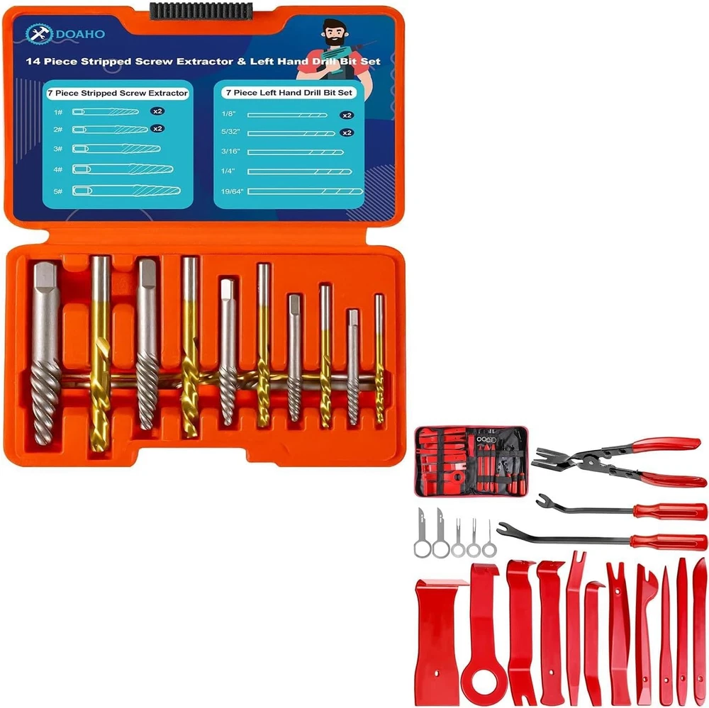 14 Pieces Screw Extractor Set, 7 PCS 35# Cr-Mo Spiral Screw Extractor Set and 7 PCS HSS Steel Left Hand Drill Bit Set and 19Pcs Trim Removal Tool Durable Material: 14 piece screw extractor and left hand drill bit set made of high quality 35# chromium molybdenum and HSS steel, good process performance, heat treatment, high strength, impact-resistant, durable How to Use: Choose a suitable left-handed drill bit to drill a hole, drive the spiral screw extractor into the hole with a hammer, remove the extractor and the damaged screw with a wrench or drill 19 Pcs Auto Trim Removal Tool Kit: Great for removing door panel, clips, fasteners, car audio/radio system, window trims or automotive interior. With a professional tool bag for easy storage, you can take it to any corner of the world for great convenience Stereo Removal and Car Terminal Removal Tools: Made of high quality stainless steel, high hardness, good flexibility, good elasticity, durable, not easy to deform, can be used repeatedly for a long time Easy to Pick and Carry: The spiral screw extractor kit comes with a sturdy storage case for easy storage;19Pcs Trim Removal Tool with storage bag You can take it to any corner of the world, which is a great convenience for you. It is an ideal tool set for DIY enthusiasts and professionals 14 Pcs Screw Extractor Set and 9Pcs Trim Removal Tool,for Remove Stripped Screws Damaged Broken Bolts & Panel, Audio, Dash, Window, Clip and Upholstery (n/a) Shipping from the USA All of our products are shipped from the USA, ensuring quick delivery to your destination. Payment We offer the following payment methods: PayPal, credit card, bank transfer, and eBay's secure payment system. Free Shipping & Free Returns Shipping within the USA is FREE. Additionally, any return is absolutely free for you. Risk-Free Purchase You have the option to return an item within 30 days without any justification. We cover the return shipping costs! Fast Shipping We ship immediately upon receipt of payment. Generally, the package is delivered within 2-3 days in the USA. If it takes longer, we will contact you. Quality and Costs Made in Europe, USA, China No customs fees or additional charges Total satisfaction guarantee Invoice with declared VAT available upon request in .pdf format Feedback Your feedback is very important to us. After you pay for your purchase, you will automatically receive positive feedback from us.