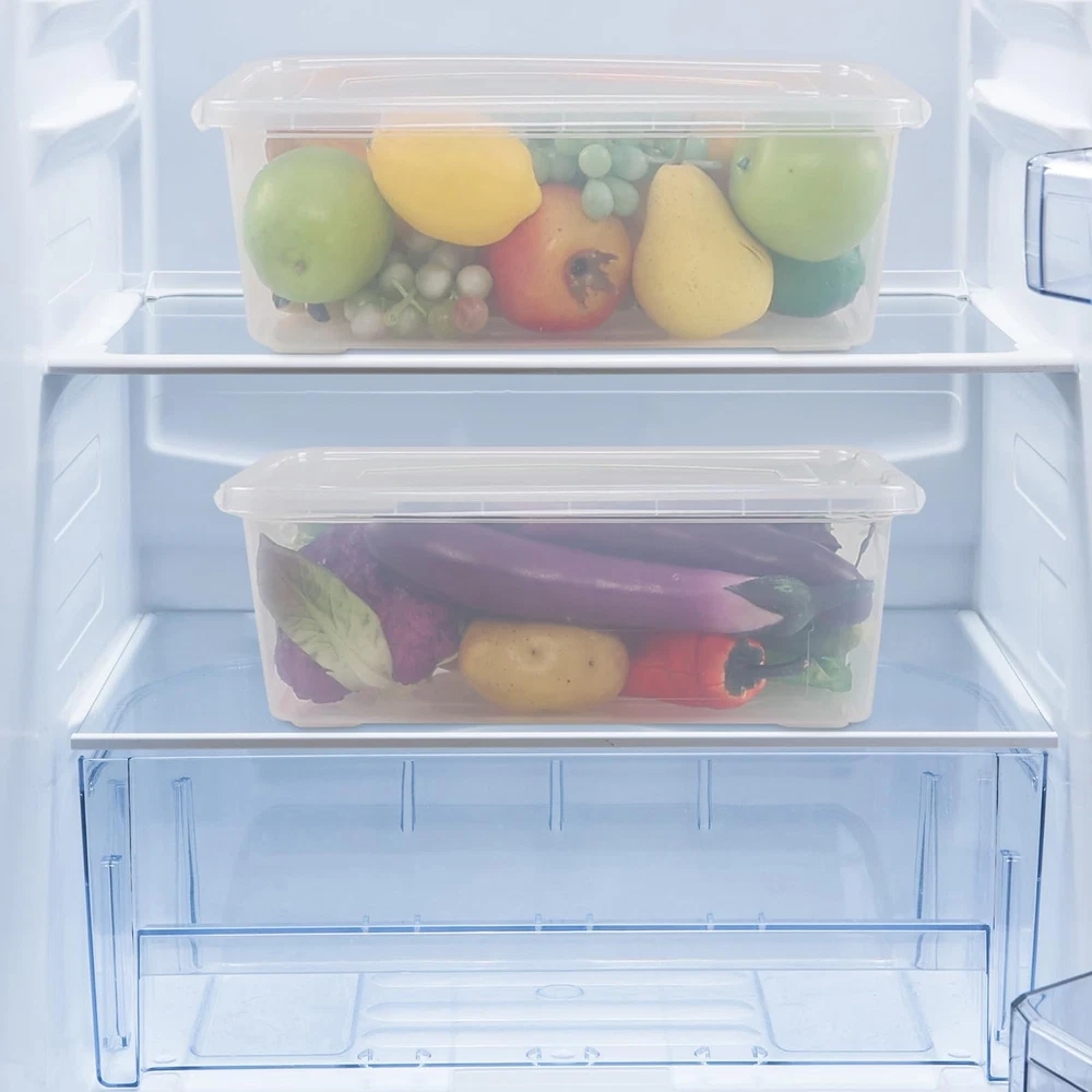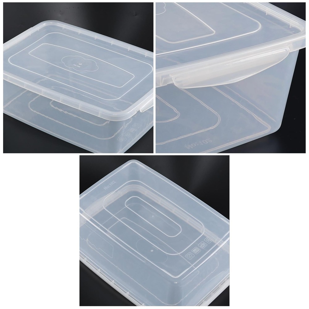 Size: 14.8" x 10.4" x 5.1" Set of 4 plastic containers with lids Full clear box, can see the contents inside when the lid is closed Can be used to as a home storage box, food container or shoe box Made of high quality plastic, durable and useful