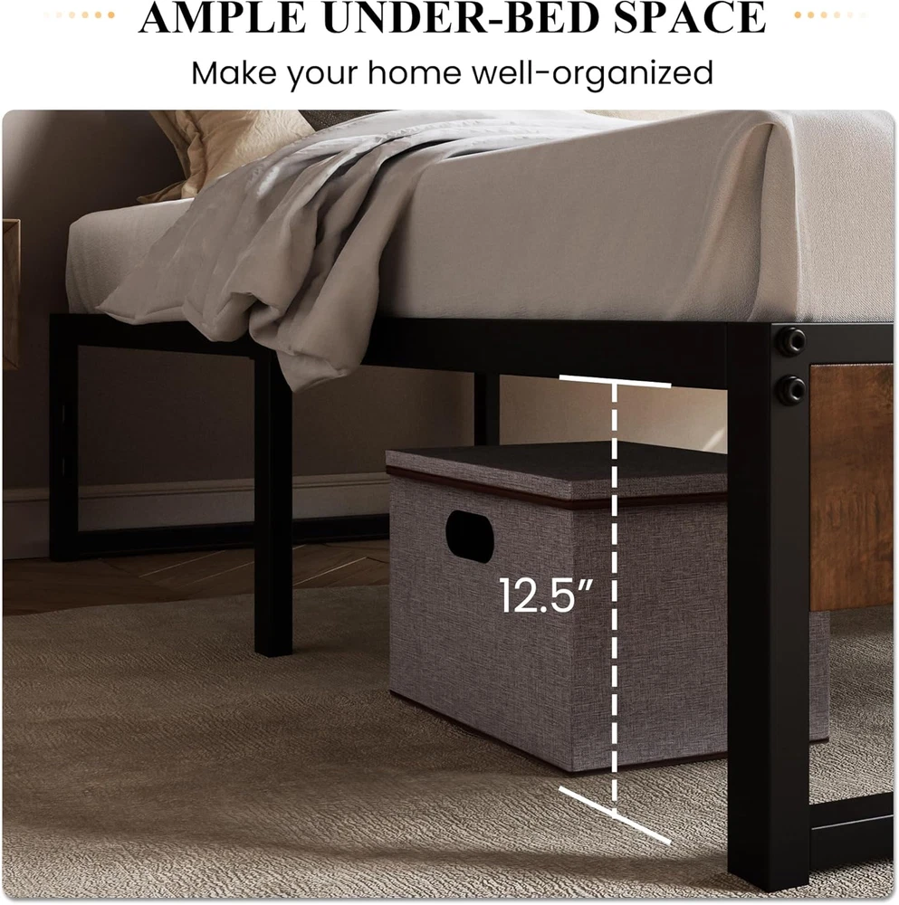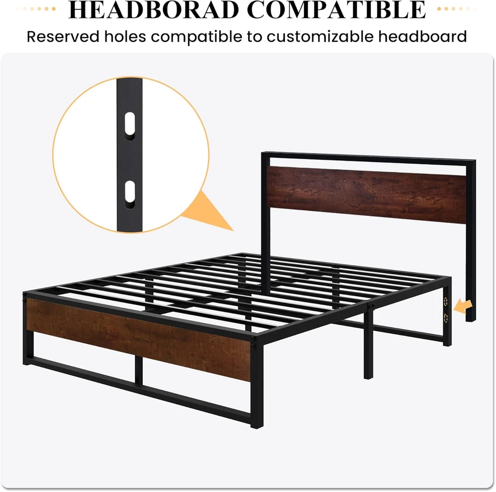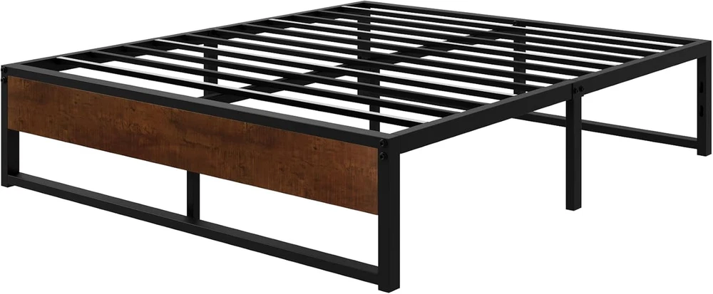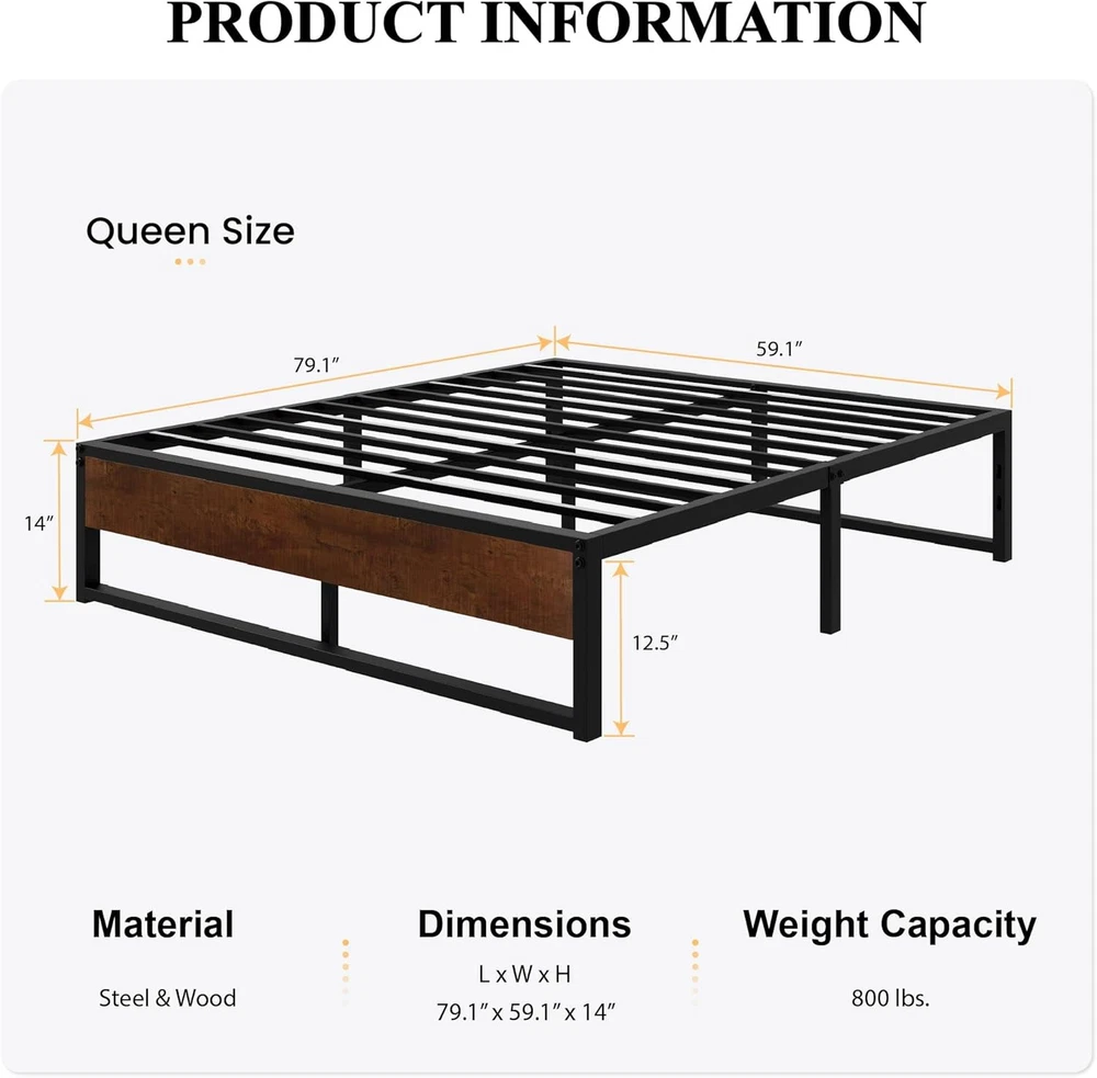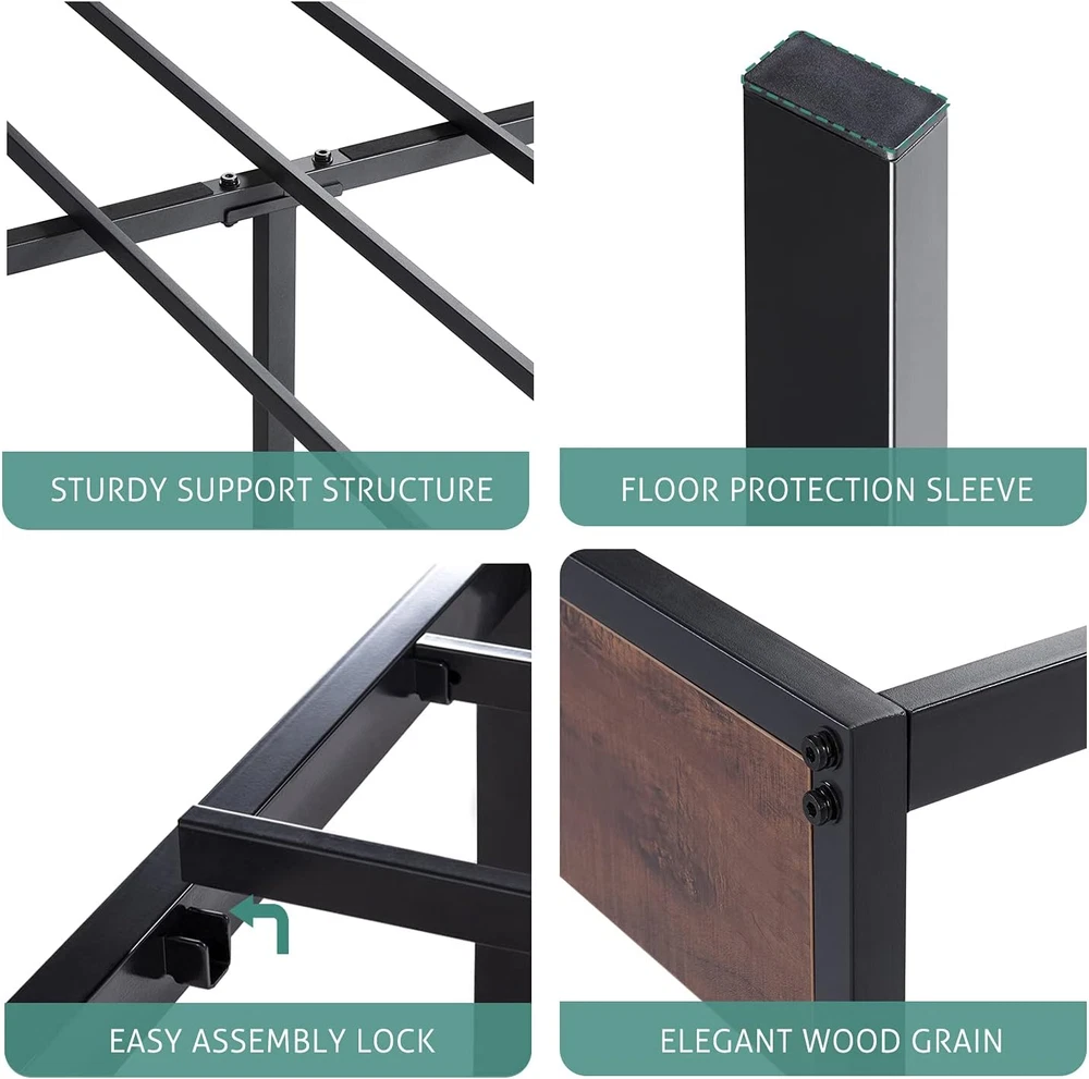 Store New Arrivals Add to Favorite View Feedback Contact 14'' Queen Size Metal Platform Bed Frame with Rustic Wood & Reverse Holes/Ample Under-Bed Storage Space/Mattress Foundation/No Box Spring Needed/Easy Assembly Description Item model number AK-WDLMBT003 Finish Type Powder Coated Style Metal Slats Assembly Required Yes Color Brown & Black Country of Origin China Product Dimensions 79.1"L x 59"W x 14"H Furniture Finish Black Material Wood, Metal, Steel Style Metal Slats Compatible With Mattress Size Queen Item Weight 39 pounds Maximum Weight Recommendation 800 Pounds Item Weight 39 Pounds Department unisex-child Ground To Item Distance 12.5 Inches Included Components Slats, Hardware Pack, Bed Frame Size Queen Special Feature No Box Spring Needed, Fade Resistant Product Care Instructions Wipe with Dry Cloth Durable Structure: Strong mattress support with 12 steel slats not only gives stability and level support but also helps prevent the mattress from sagging and enhances mattress life, without the need for a box spring. The weight limit is 800 pounds Stylish Design: Rustic wood footboard coupled with a black steel frame offer a sleek, inspired look. Thoughtful reserved holes for DIY headboards, you can match any headboards you like, suitable for all decoration themes Underbed Clearance: This platform features 12.5 inches of under-bed space, perfect for storing extra odds and ends, and making your home tidy Easy to Assemble: All parts, tools, and instructions are packaged in one box, and easily assemble for an adult to finish in minutes. Quick assembly system to save your time and hassle Quiet Sleep: Solid steel frame and evenly slats support system to avoid noise for any activities, enjoy every silence second for a good night's sleep Product Description 1 Modern & Durable Board 2 Reserved Holes 3 Ample Storage Space 1 Stick Tape Design 2 Easy Assembly 3 Durable Structure 4 Protective Foot Pad Modern Metal Bed Frame with Headboard, Mahogany Comes with a wooden headboard and footboard, making it a stylish and durable choice. Modern Metal Bed Frame with Headboard, Walnut Comes with a wooden headboard and footboard, making it a stylish and durable choice. Modern Metal Bed Frame with Headboard, Black Oak Comes with a wooden headboard and footboard, making it a stylish and durable choice. Rustic Wooden Metal Bed Frame Style Meets Quality - a curved headboard with signature wood grain and a sturdy foundation. ABOUT US We offer the best prices around on high quality products. Our E-store includes media such as books, movies, music and games while offering electronics, toys, sporting apparel, clothing, tools, general home, garden items and more. SHIPPING We are always working hard to ensure your package arrives as soon as possible. Please understand that some factors like weather, high postal traffic, and the performance of shipping companies are outside of our control. We offer free shipping to the lower 48 states and ship within 2 business days of payment, usually sooner. We do not accept P.O. Boxes. Please provide a physical address. For shipping outside of the continental USA, we only use eBay's Global Shipping Program.The item is shipped to KY and then sent to the rest of the world. International customers are responsible for all duties and taxes. Continue to check out in order to calculate costs for shipping the item to your country. Messages regarding eBay's Global Shipping Program MUST be directed at eBay EXCLUSIVELY. RETURNS We offer a 30-Day Return Policy on items which you are not completely satisfied with. You have the option for a full-refund or an exchange of the item. No returns are available on items shipped outside of the USA. PAYMENT We accept PayPal. CONTACT US This page content is yet to come Please ad us to your favorite seller and visit again later Thank You CUSTOMER SATISFACTION We try our very best to make sure every customer is completely satisfied. If there's a problem, message us! We're happy to help. WE ACCEPT Copyright © 2021 AutoDS. | All Rights Reserved
