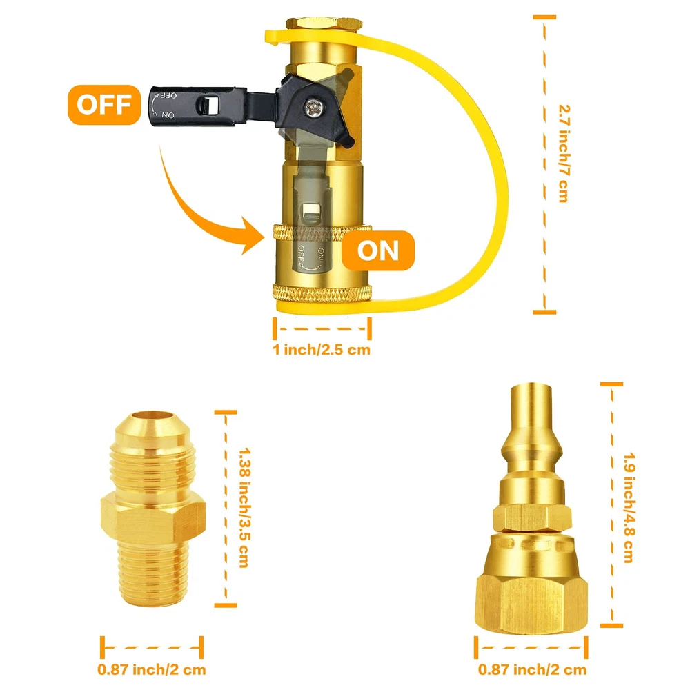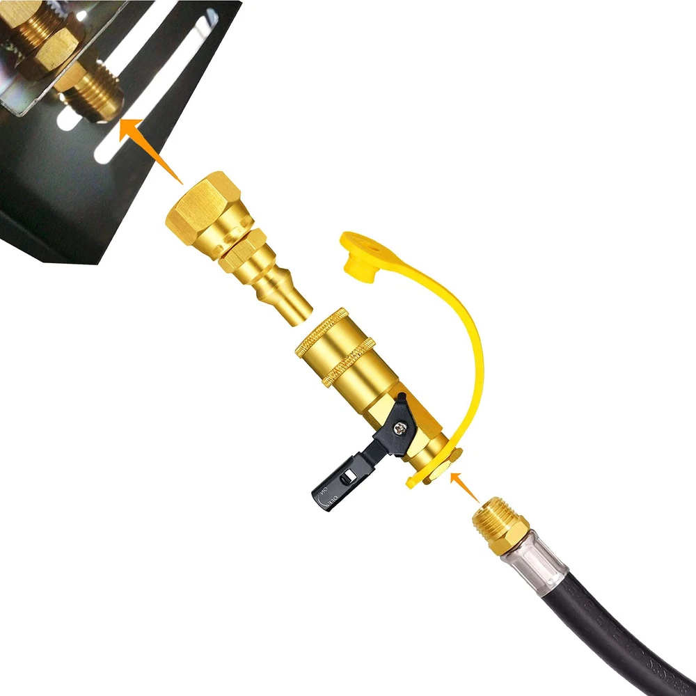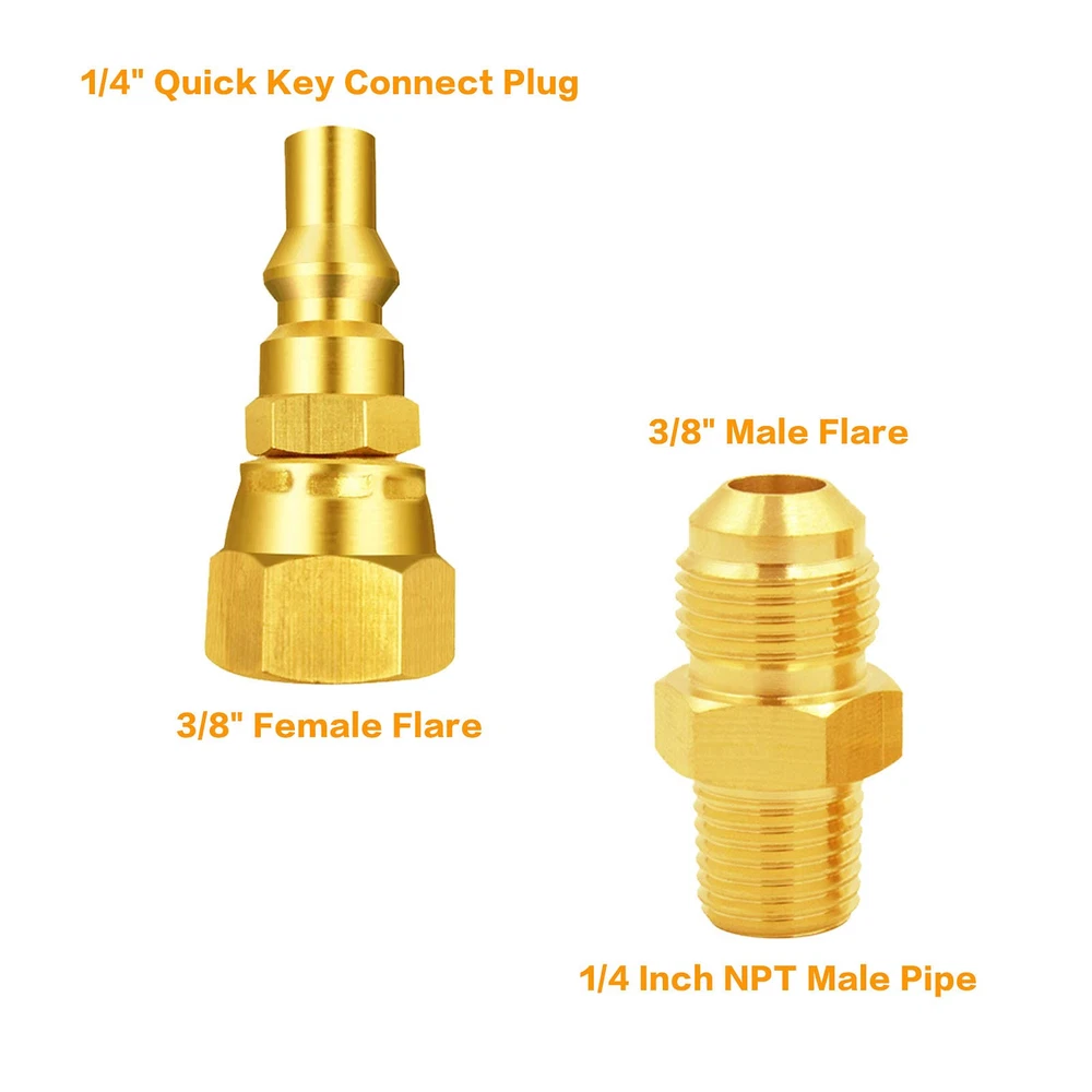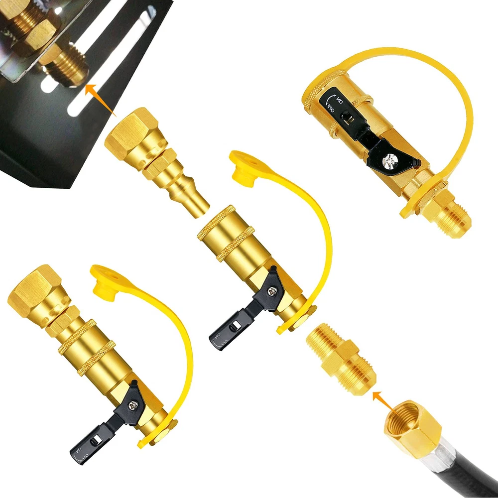This is an ideal sets of Quick connect Conversion Kit to convert the regulator on grill to disconnect type easily Great to convert the grill to connect RV extension propane hose with 1/4" Quick plug adapter with 3/8" Female Adapter It can be convert most of grill with 3/8" Male flare fitting after remove the regulator. Suitable for Blackstone 28” and 36” Outdoor Griddle,Char-Broil Liquid Propane Gas Grill,Royal Liquid Propane Event Gas Grill,Cabinet Liquid Propane Gas Grill,Dual Fuel Combination /Gas Grill etc The Kit is works for low pressure application only with 1/4" male plug and female NPT Thread The Kit includes: 1 of 3/8" Female Flare x 1/4" quick Plug adapter, 1 of 3/8" Male flare x 1/4" NPT male Fitting, 1 of 1/4" Quick Shut off control valve and 1 of TPEF sealing tape.
