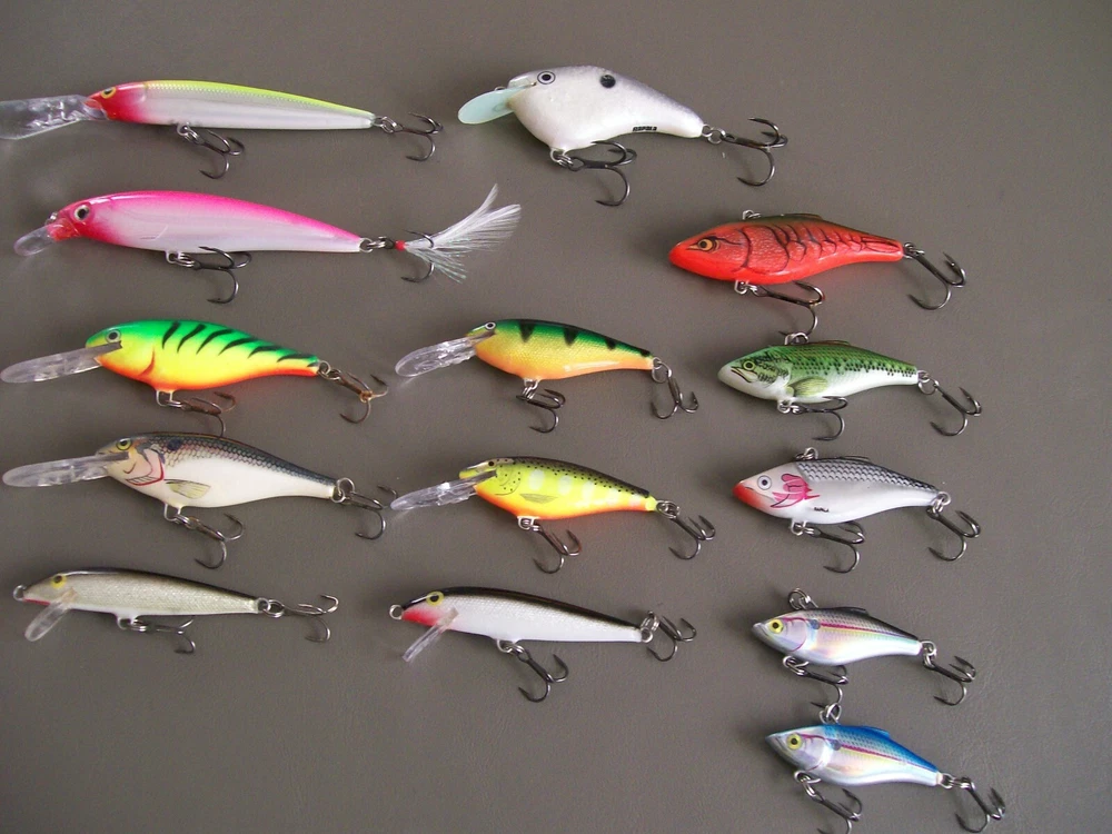Here is a FLW plastic case with 14 Rapala baits, most of these look unused. You get everything in the picture. Shipping is 8.00 and I will always buy back anything you`re not happy with.