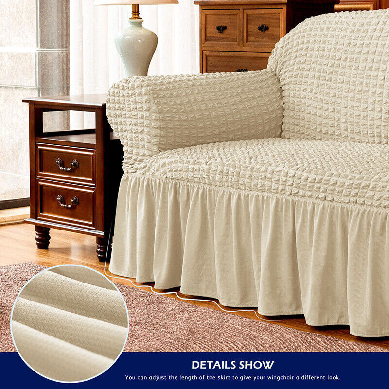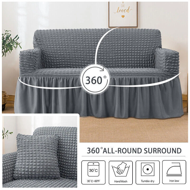High Elastic Bubble Grid Sofa Cover 1-4 Seater with Skirt Hem for All Seasons