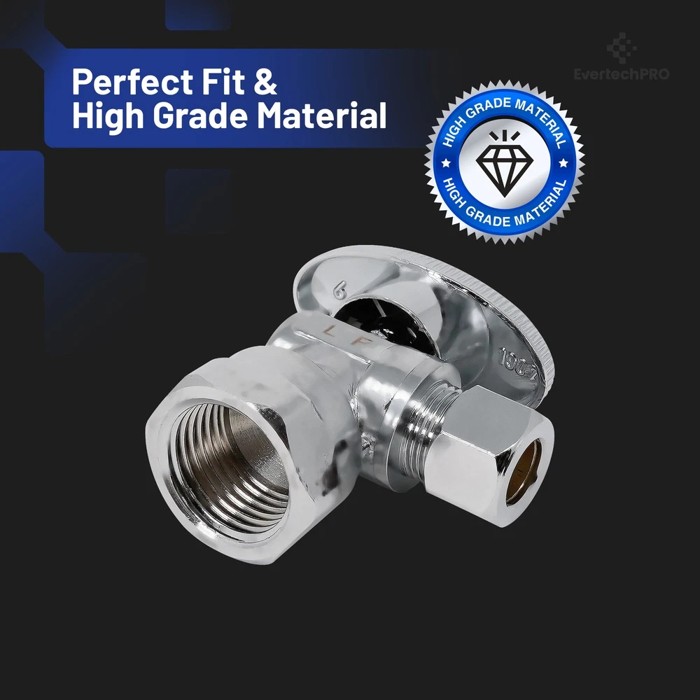 Introducing our high-quality 1/4 Turn Angle Stop Valve, a remarkable addition to your plumbing needs. Engineered with superior precision, this 1/2 water valve x 3/8 OD compression valve ensures efficient and reliable water control. Our 1/4 compression valve is an essential component designed to provide a secure shut-off mechanism for various plumbing applications. The chrome-plated finish of the angle stop valve offers not only an aesthetic appeal but also contributes to its longevity by resisting corrosion and tarnish. The 1/4 turn shut-off valve guarantees a quick water flow cut-off, making it an ideal choice for time-sensitive situations like leaks or repairs. This compression fitting valve also works as a toilet water valve, providing an efficient shut-off mechanism for your toilet water supply. It can also function as a sink shut off valve, securing your faucet valves when necessary or toilet water supply valve. With a 1/2 inlet and a 3/8 outlet, this brass craft angle valve 1/2 x 3/8 compression is perfect for a wide range of plumbing projects. The versatile angle valve can be used as a toilet shutoff valve, a kitchen sink valve, or even a bathroom sink water supply shutoff valve. Whether you need a faucet cut off valve, a sink ball valve, or a water stop valve, this product has got you covered. The 1/2 compression shut off valve is designed to fit a wide array of plumbing supplies valves, making it a must-have for every household's plumbing fixture shutoff valve needs. Our stop valve stands out for its superior functionality, serving as a toilet water valve shutoff, a kitchen water valve, or a sink valve shut off. Whether you are fixing your toilet plumbing valve, replacing your bathroom sink valves, or installing a new kitchen sink valve, our 1/4 turn angle valve 1/2 inlet 3/8 outlet will provide seamless operation. In conclusion, this compression valve is a high-quality, versatile fixture that meets a variety of plumbing needs. From acting as a toilet shutoff to serving as an under sink shutoff valve, its functionality is unparalleled. Choose our 1/4 Turn Angle Stop Valve for reliable and efficient water control.