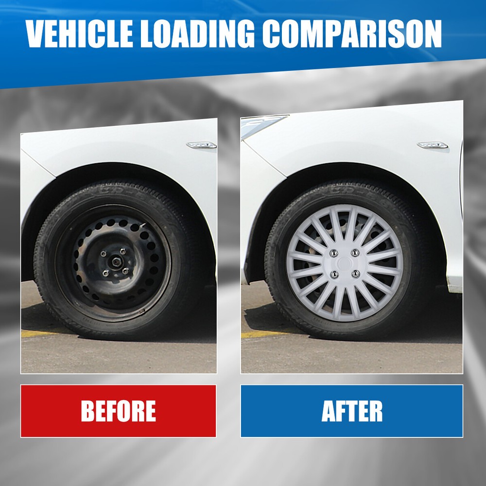 These white wheel covers are a fantastic upgrade! They fit my 14" wheels perfectly and give my car a clean, polished look. Installation was quick, and they stay securely in place even on bumpy roads. Great protection against scratches and road debris—definitely worth the money for the style and durability they add. Highly recommend checking your wheel size first to ensure the best fit!