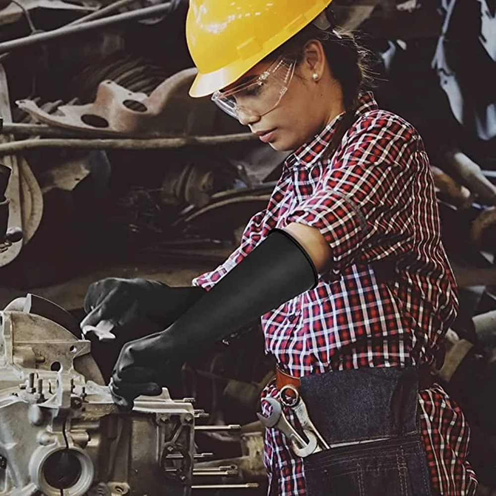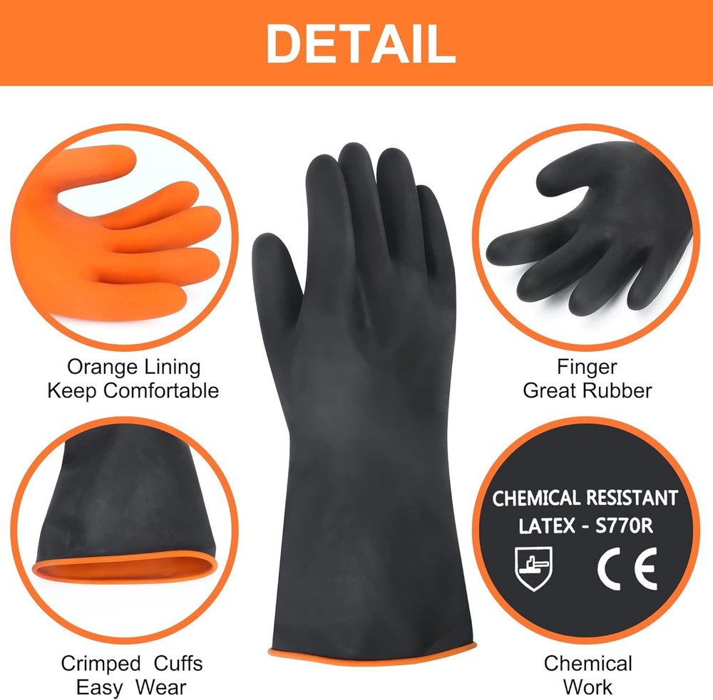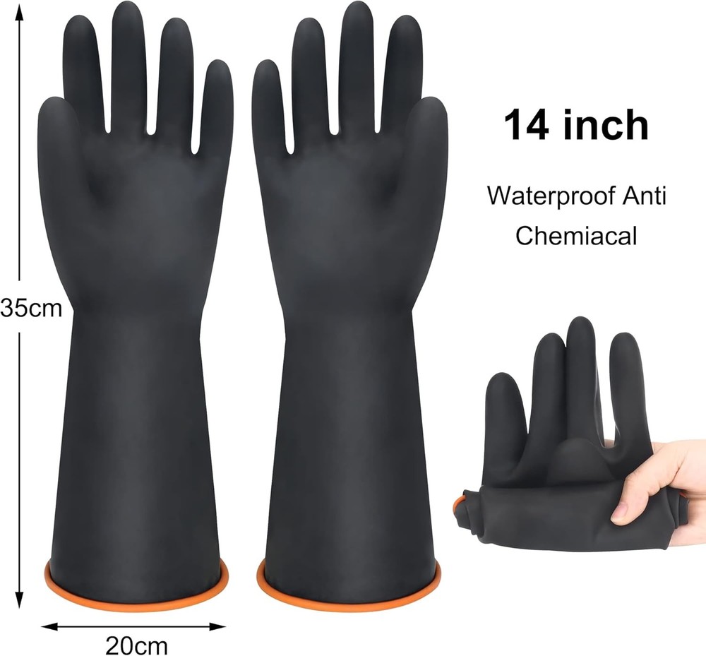 14" XL Latex Chemical Resistant Gloves - Reusable Heavy Duty Long Rubber Dishwashing Gloves for Men - Industrial Safety With Forearm Protection, Waterproof, Resist Strong Acid, Alkali, Oil Product Details Product Dimensions : 7 x 6 x 0.75 inches; 6.84 ounces Item model number : 004 Department : Unisex Adult