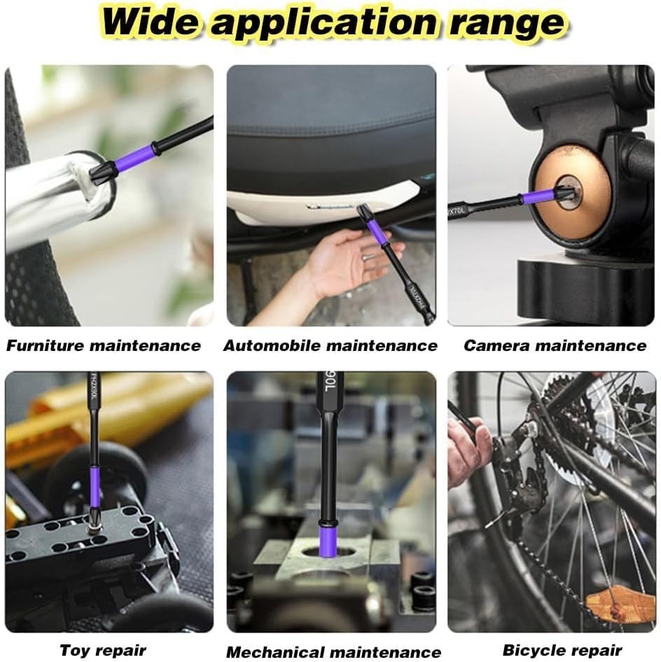 ✅Shock Resistance: Magnetic drill bits are designed to withstand high-impact forces. Drill screwdriver bit set is important when using them with tools like impact drivers, which deliver sudden and powerful rotational impacts. The shock-resistant design helps prevent the bits from breaking or becoming damaged under such conditions. ✅Deep Bite Design: The deep bite design of the screwdriver bits allows them to engage more deeply with screw heads. This can reduce the potential for head slippage and improve overall work efficiency by providing a stronger connection between the bit and the screw. ✅Non-Slip Serrated Blade: The screwdriver bits feature a non-slip serrated blade. This design helps to grip screws more effectively, reducing the likelihood of the screwdriver slipping out of the screw head during operation. This is important for maintaining a secure grip and preventing damage to the screw or work surface. ✅Mechanics Principle Design: The design of the screwdriver bits takes into account mechanical principles. This includes considerations such as torque and impact forces. The design is intended to ensure that when the impact driver engages with the screw head, some of the resulting collision reaction force is absorbed by torsion, which can help prevent the cutter head of the bit from breaking. ✅Hardness ≥ 62HRC: The hardness of the bit head is specified to be equal to or greater than 62HRC (Rockwell C scale). This high hardness level indicates that the bit material has been optimized for durability and can withstand considerable wear and stress without becoming deformed or damaged.